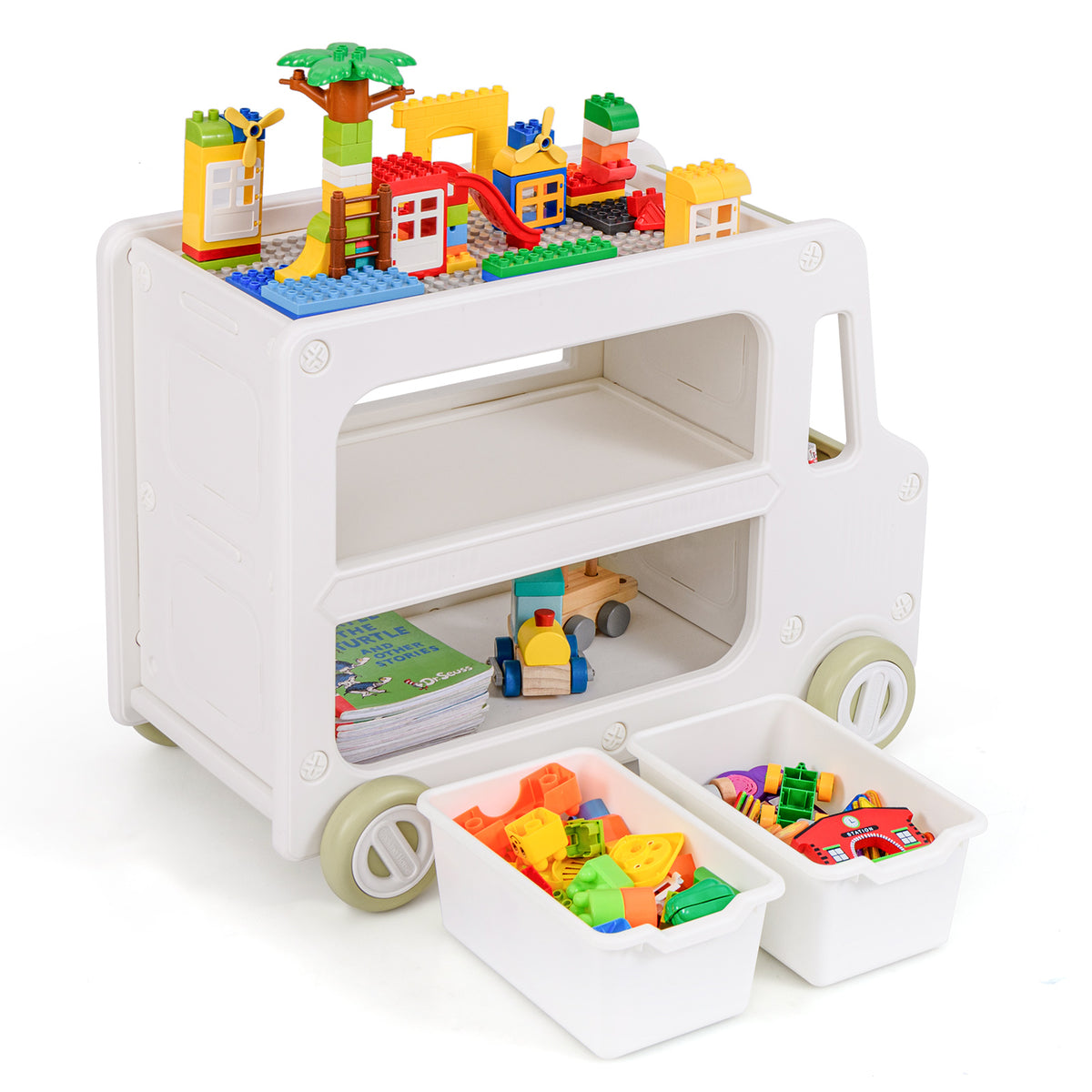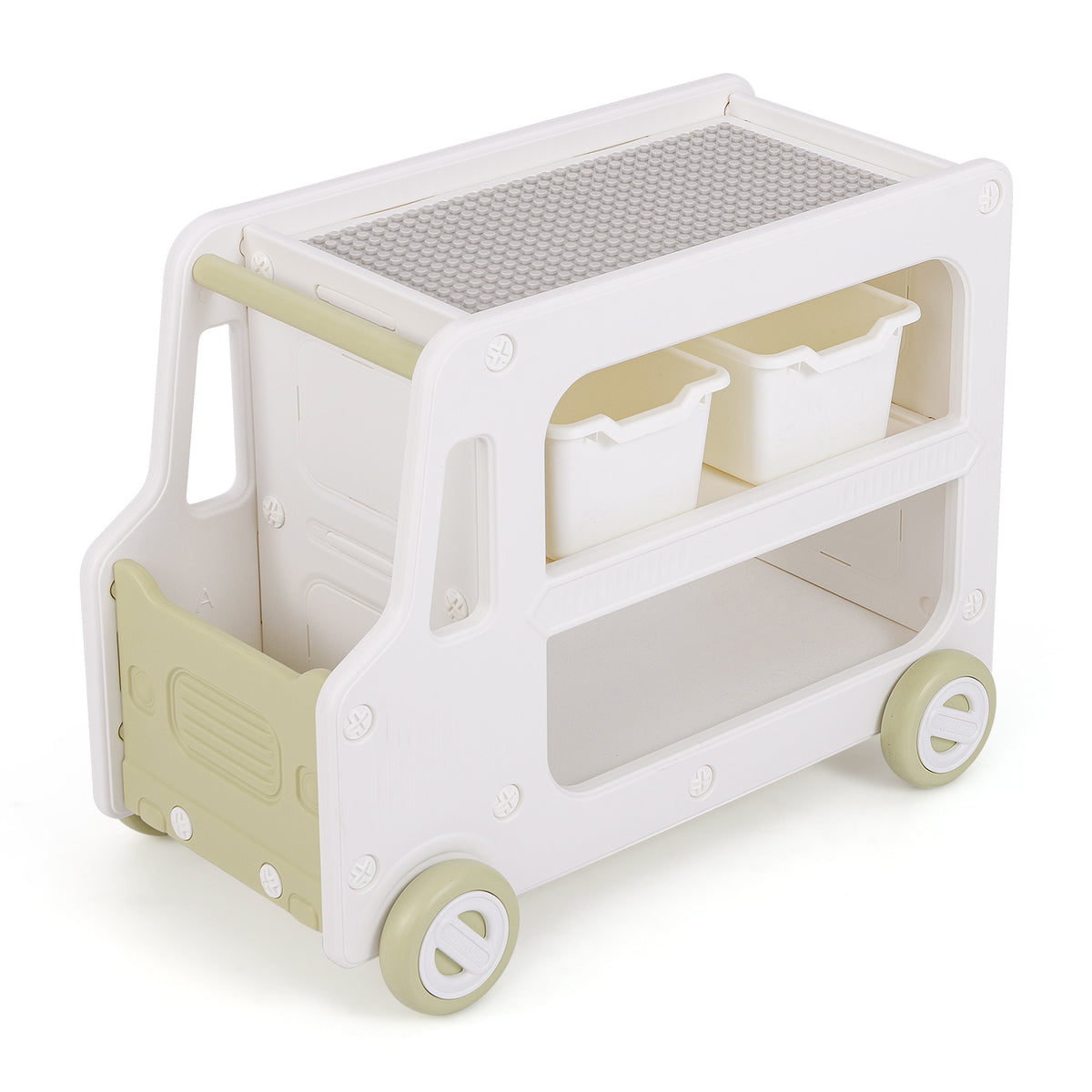 Crafted from premium HDPE material, this toddler organizer features a stable frame ensuring durability and safety. With a 2-tier opening shelf, deep compartments, and two large storage baskets, it provides ample space to neatly organize toys while cultivating children's storage habits. The convenient handle and smooth wheels make it easy to move around, and the easy-to-clean surface saves you time and energy. Perfect for bedrooms, living rooms, and playrooms, this car shaped toy organizer is designed to enhance both playtime and tidying up. 2 in 1 Multifunctional Design: This car-shaped toddler organizer combines a top building block panel and a storage cabinet as one. It can be used as a toy storage organizer or a building block display car, which offers kids with endless fun. Selected Material and Stable Frame: Crafted from premium HDPE material, this kids toy cabinet is safe and reliable to use. Besides, the sturdy frame ensures excellent durability, providing a stable structure for long-term storage solutions. Large Storage Space: Equipped with a 2-tier opening shelf, deep compartments, and 2 large storage baskets, this organizer offers ample space to neatly organize toys and belongings. Moreover, it also helps cultivate children's storage habits. More Convenient Designs: Complete with smooth wheels and a convenient handle, this organizer pays attention to the finer details to enhance functionality and user experience. The surface is smooth and easy to clean, which saves you time and energy. Wide Application and Dimensions: This kids storage organizer is carefully design for kids to play and store toys. It can be widely used in bedrooms, living rooms, and playrooms. The overall dimensions are: 73 x 42 x 56 cm (L x W x H)