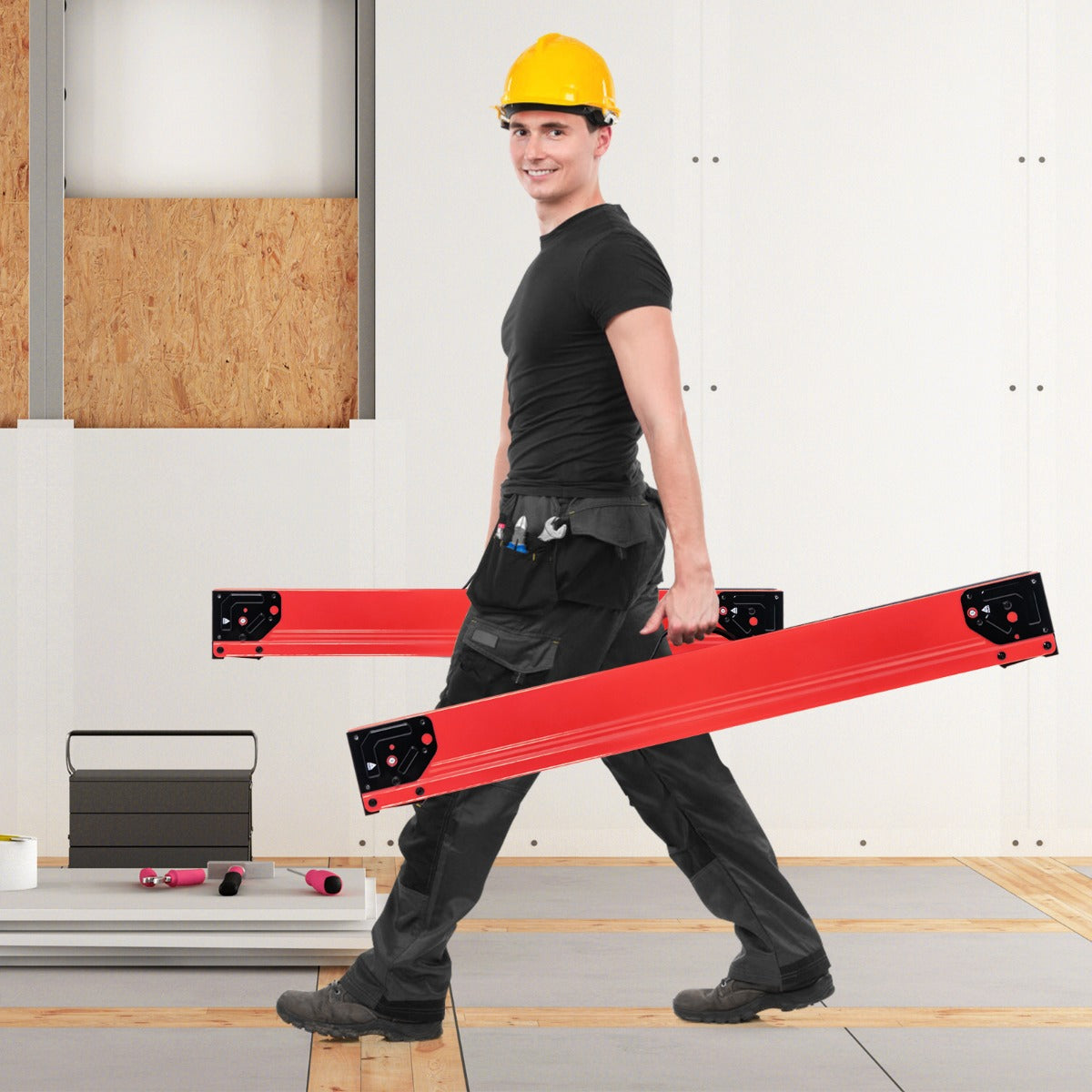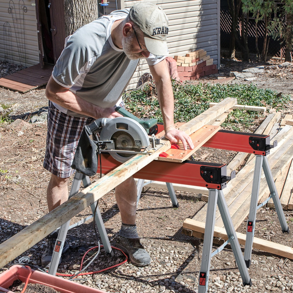 2 Pack Saw Horses with Folding Design Non-slip Pads and Surface-Red