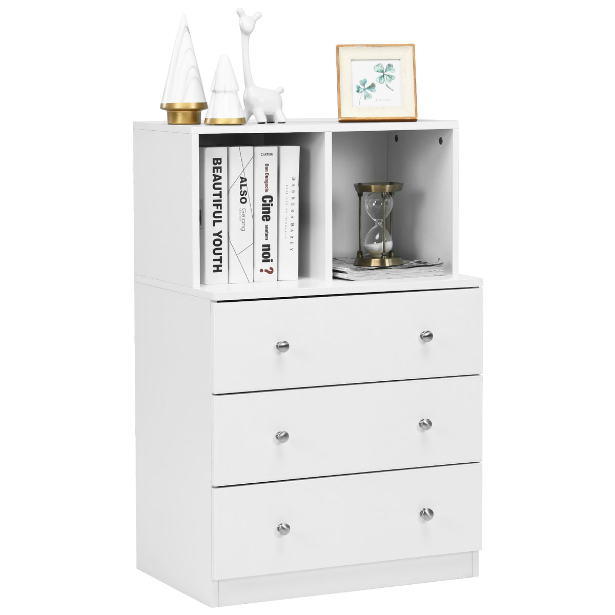 3-Drawer Dresser with 2 Open Compartments for Living Room Bedroom-White