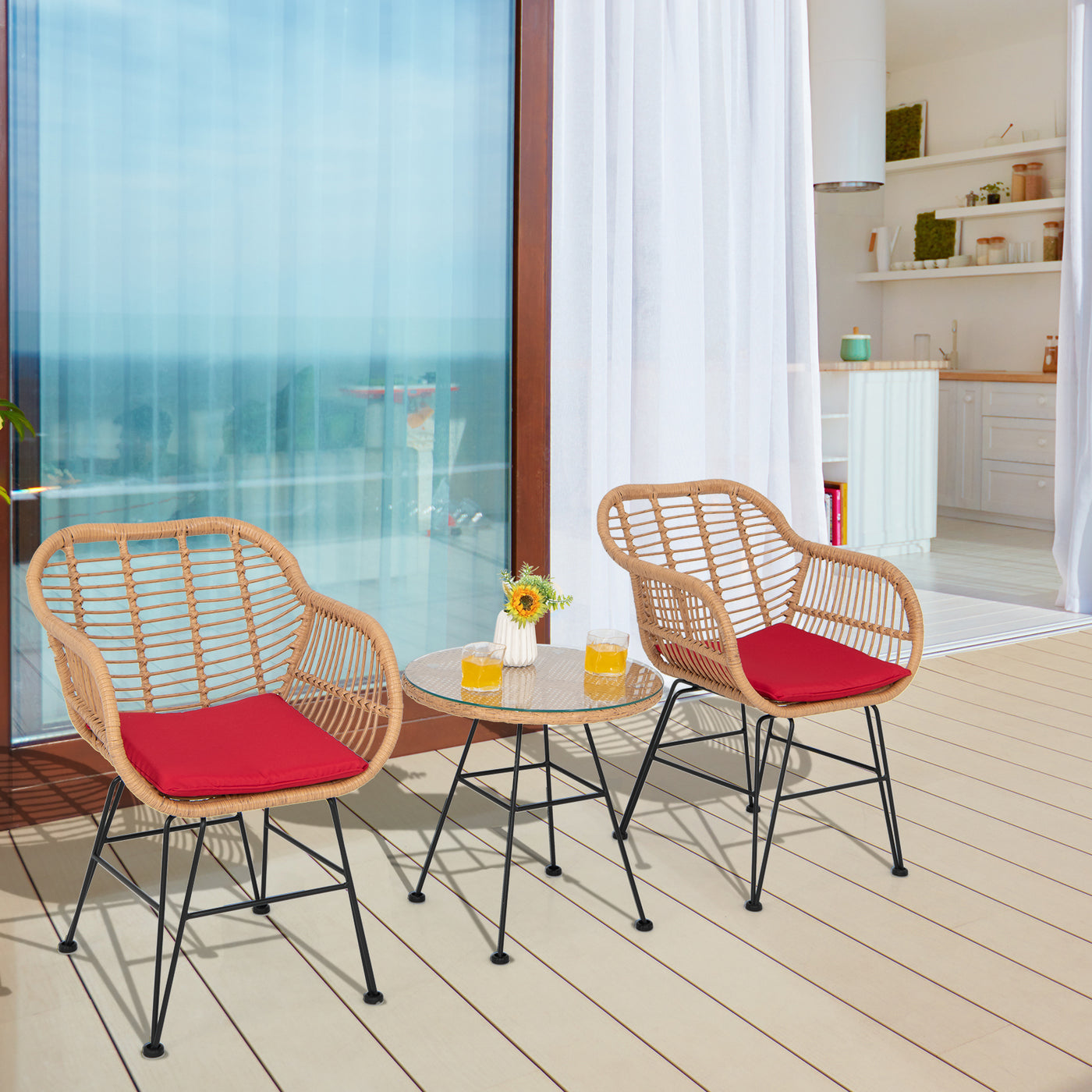 3 Pieces Patio Bistro Set with White Fabric Replacements-Red