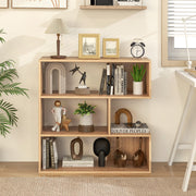 3-tier Bookshelf Irregular Open Back Bookcase with 3 Cubes-Natural