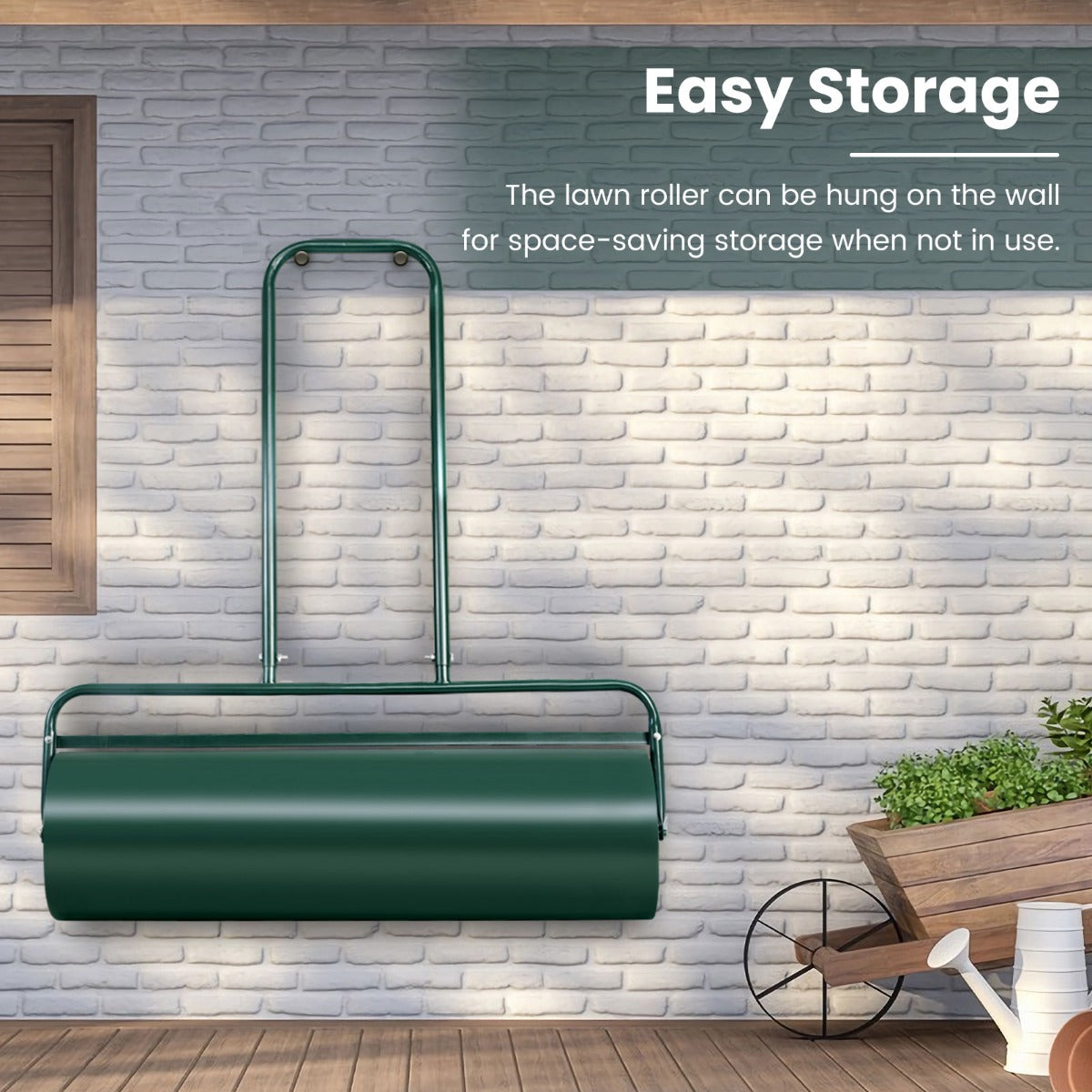 The 48L lawn roller is perfect for using in your patio and garden. Before planting new grass seed, the lawn roller can help level uneven ground. After seeding, the rolling helps speed up germination by ensuring that seeds make contact with soil. Moreover, the sod roller is designed to give you convenient using experience. The U shaped handle makes the rolling easier to pull and push. While made of steel material, the rolling is lightweight so that you can store and transport it easily. Don’t hesitate to buy this lawn roller to make your lawn more beautiful and premium. Ideal for Large Lawn: The lawn rolling machine, with rolling width, not only can erase damage by moles and frost heaves, but also can pack down loose dirt, newly sewn seed or sod, which improves the quality of your lawn. It is perfect for achieving an even and smooth lawn. Premium Material: Manufactured with high quality steel frame, the sturdy drum is durable to even sod in front of your house. Besides, the lawn roller is protected with surface paint to prevent rusting and fading. Therefore, this lawn roller will give you years of worry-free use. 48L Large Capacity: With large capacity, the sod roller, holding up to 48L of water sand or cement, is heavy enough to press the raised lawn back to its original position so that the loose rhizomes are closely integrated with the underlying soil. Humanized Design: Convenient push and tow-behind design provides versatility for rolling tight areas. In addition, the U shaped handle make operation more convenient. What’s more, the rounded drum edges help avoid damage to your lawn during turns. Easy for Storage and Transport: The lightweight lawn roller can be easily transported when it is empty. Other than that, when finishing rolling your lawn, you can simply drain and hang this compact roller in your garage or shed, which occupies minimal space.