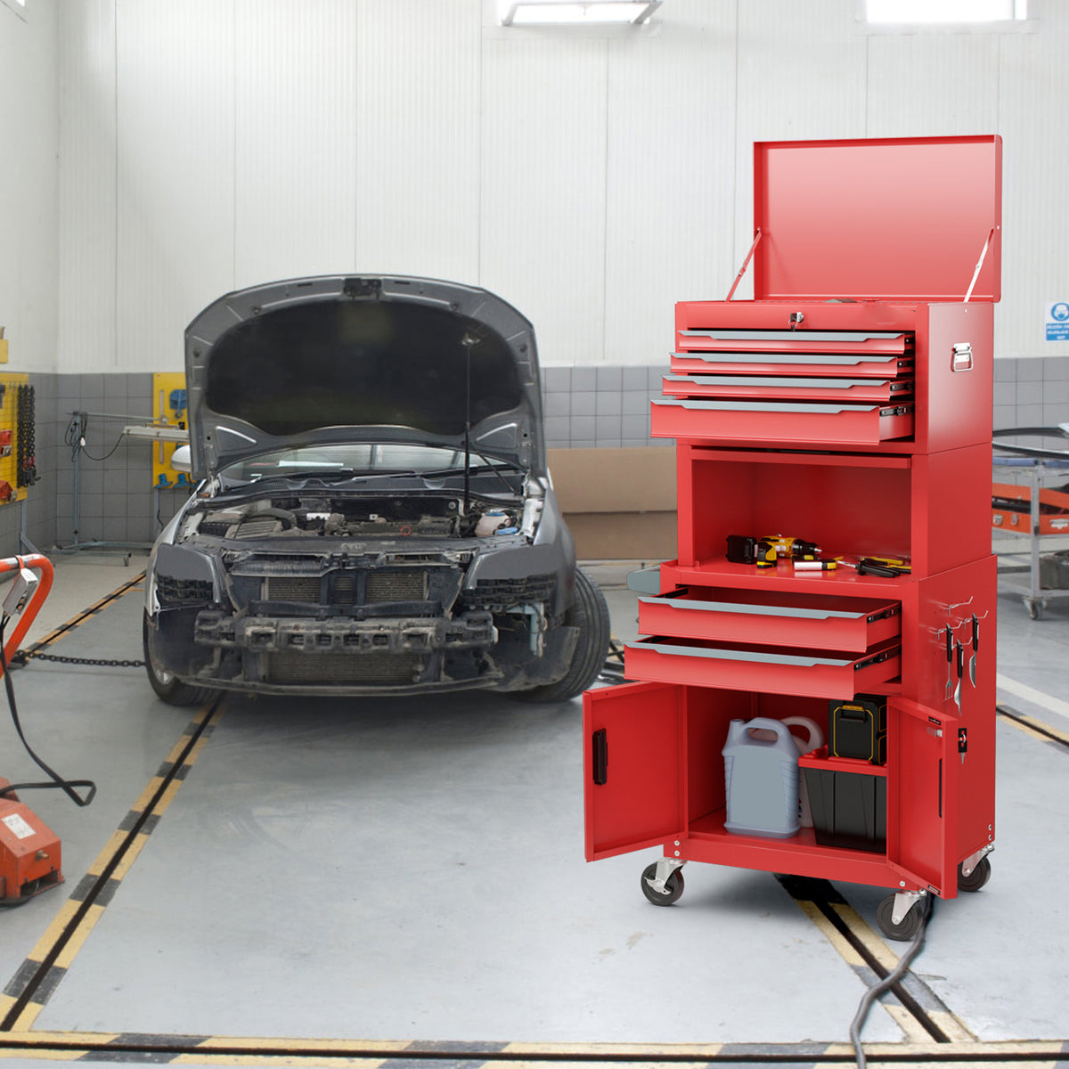 With high-grade metal structure, this 2-in-1 tool chest combo can withstand heavy weight, showcasing robust durability. With a top box,...