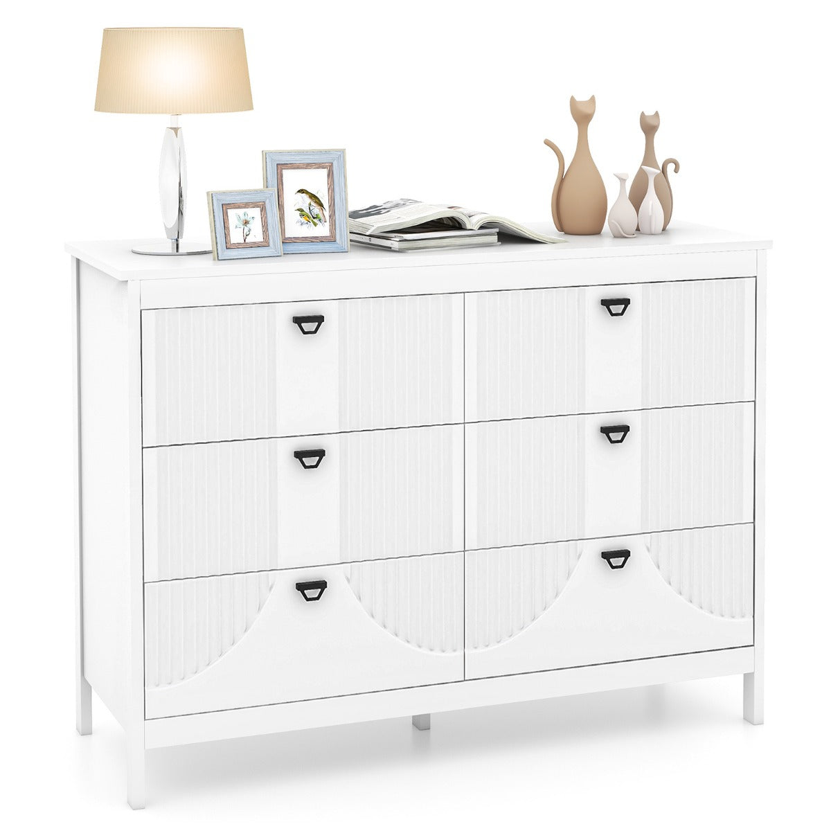 You can greatly enhance home organization with our versatile storage cabinet, featuring 6 spacious pull-out drawers and a generous top surface. Crafted from high quality MDF, this cabinet is perfect for long-time use. What’s more, the reliable 5-point support ensures a solid structure. The high-quality metal slides ensure smooth drawer operation, while the elegant handles provide a sophisticated touch. Additionally, non-slip foot pads protect your floors from scratches and enhance stability. The easy-to-clean, water-proof surfaces ensure low maintenance! Whether used as a bedroom storage chest, buffet cabinet, or office storage solution, this piece effortlessly adapts to various settings. Elevate your storage solutions with this chic and functional storage cabinet! Ample Storage Space: This storage cabinet offers a clutter-free solution with 6 pull-out drawers, which is perfect for organizing daily essentials. Moreover, the spacious top is great for small appliances or decorative items to reduce clutter and increase efficiency. Robust Construction: This storage cabinet is made of thickened MDF for durability and dependability! Five sturdy legs enhance the structure and hold up to 60kg. Additionally, the cabinet is equipped with 2 anti-toppling devices for added security. Superior Craftsmanship: Each drawer boasts high-quality metal slides for smooth operation, while elegant handles add a touch of sophistication. Moreover, non-slip foot pads protect your floors from scratches while add extra stability. Versatile Usage: The chest of 6 drawers functions seamlessly as a bedroom storage chest, buffet cabinet or stylish office storage cabinet, catering to a range of needs. There's no doubt that its modern look and adaptable design will blend effortlessly into any indoor settings. Detailed Instructions and Easy Maintenance: The package will come with detailed instruction and all the necessary parts to help you set it up. And the easy-to-clean surfaces are water-proof and smooth, making maintenance a breeze. Note: Two packages included and may come at different times.
