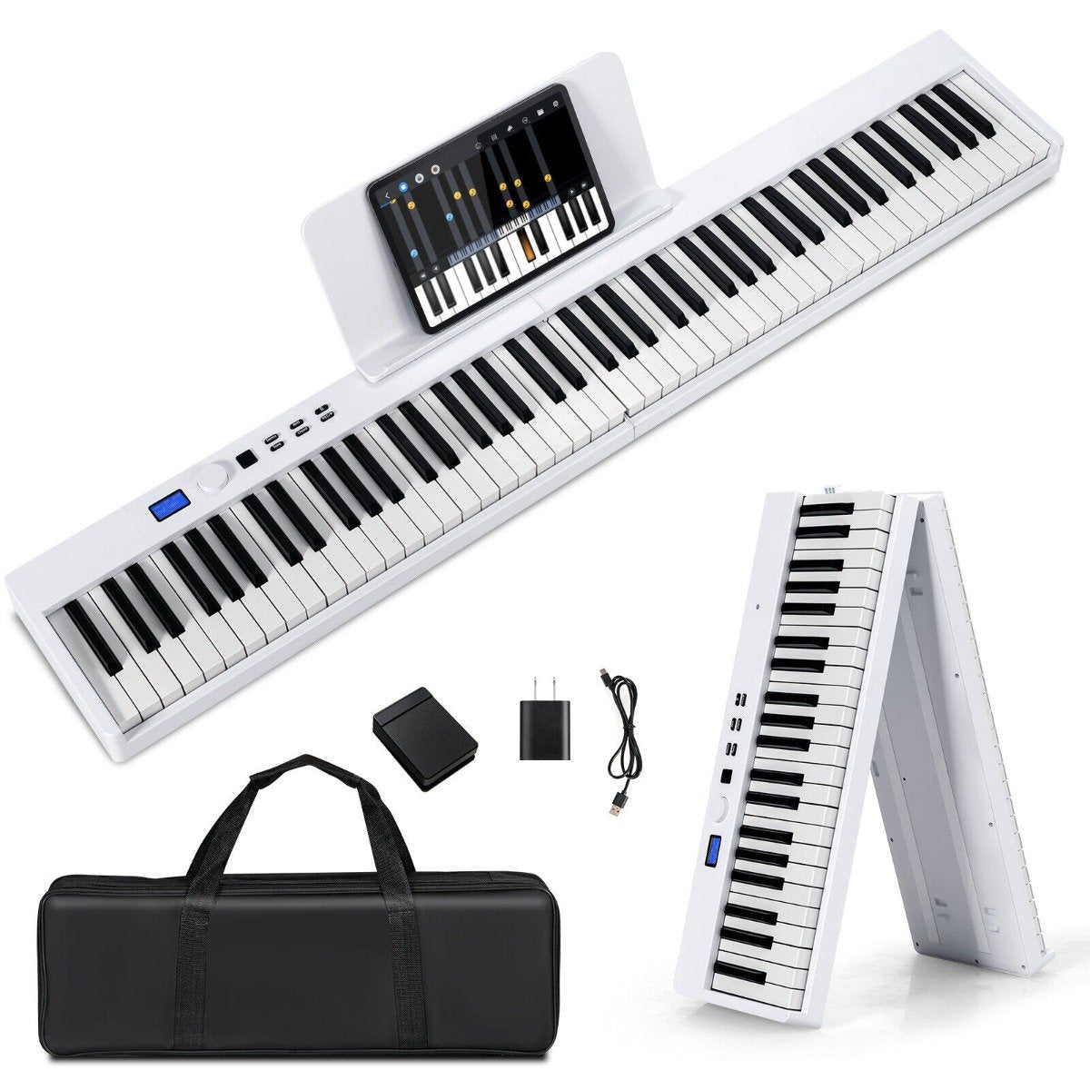 88-Key Foldable Full-Size Semi-Weighted Digital Piano Keyboard with MIDI-White