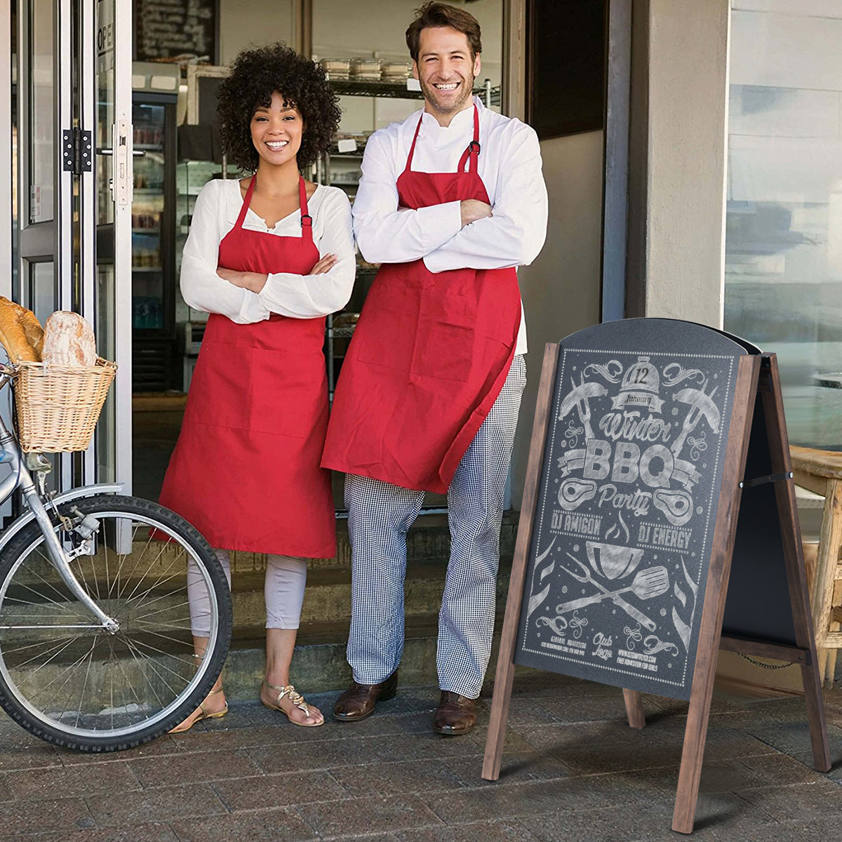 This "A" frame sign has double blackboards so that you can create your own signs. This "A" frame board offers double sided blackboards. Create your own signs with white or coloured chalks. Great for both inside and outside use, with locking side hinges and non-slip feet. If you are looking for a such product, do not hesitate to buy it! You can write on both sides on each board The "A" board design makes for a more stable stand The pine frame has been stained with waterproof staining Suitable for inside and outside use (designs may run in wet weather) For durability, the slot is 3cm wide The chalkboard is made from MDF and Melamine material, which meets E1 European standard Two heavy duty hinges provide extra stability which can be adjusted for different angles Sanded smooth finish