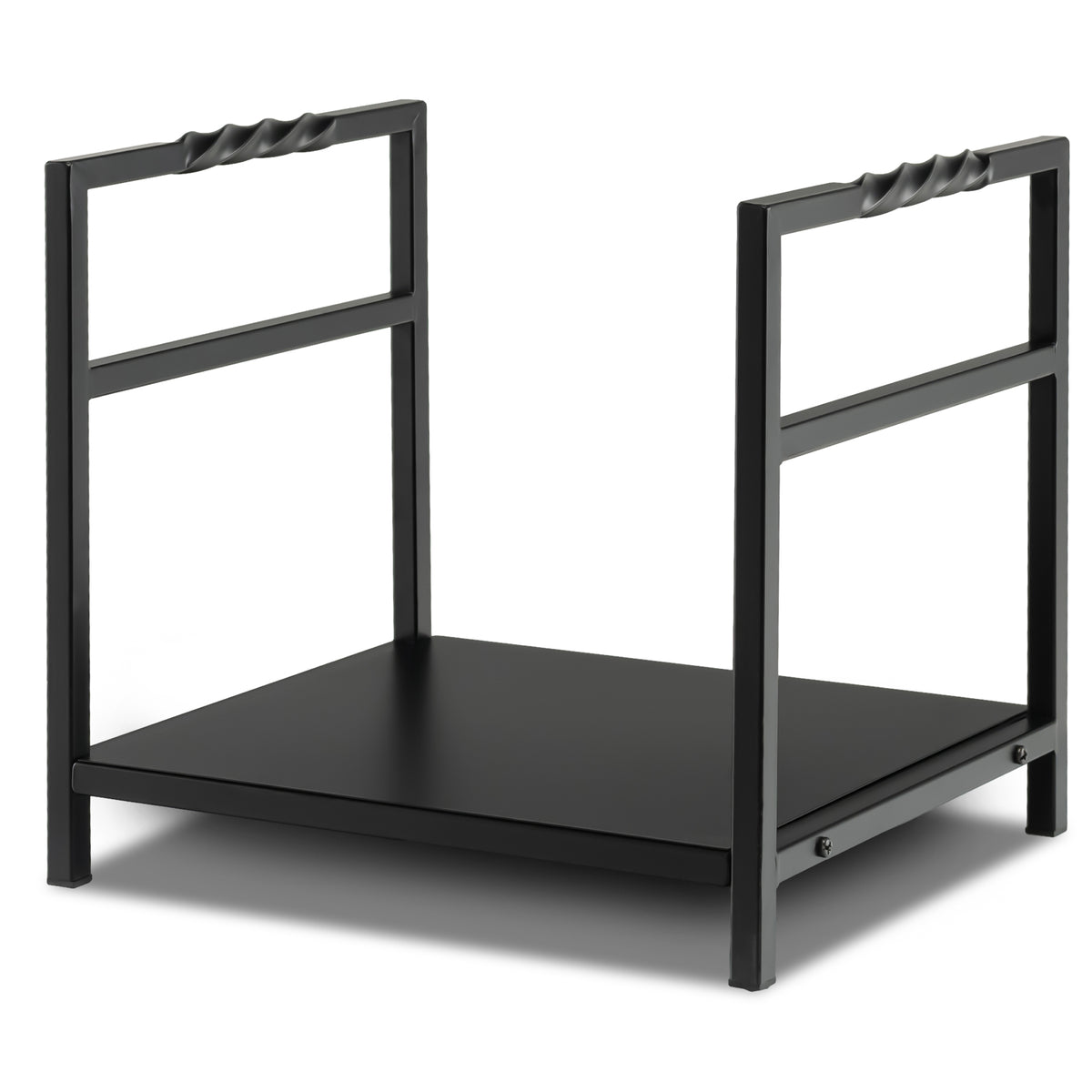 The functional U-shaped structure with solid base board makes the rack an ideal place to store firewood. The firewood rack is quite sturdy and can load heavy weight thanks to the reinforced steel frame which is also rustproof. And the anti-slip footpads effectively protect the floor and highly improve the overall stability. Moreover, you can carry this firewood rack easily with the unique handles. All in all, this holder is not only practical for the storage of firewood, but also a perfect home decoration. Organize Firewood Well: This 40cm firewood rack provides a perfect place for you to store logs, making them compactly arranged and well organized. Different from other holders with hollowed base, this firewood holder with solid base board can prevent residue from falling to the floor. Sturdy and Rustproof Steel Frame: Constructed of heavy-duty steel material, the whole lumber holder is super sturdy and deformation resistant. Also, with plastic sprayed surface, the log holder won’t easily rust. Moreover, the anti-slip footpads give considerate protection to the ground from scratches. Considerate Design: The fireplace rack possesses convenient handles on the two sides, so you can carry it with less effort. The screw thread patterns not only add more elegance, but also make the handles much easier to grip. In addition, the 4.5cm raised legs effectively promote air circulation and prevent dampness. Perfect Home Decoration: Designed with minimalist style and elegant black surface, the wood stacking rack is quite eye-catching in different indoor occasions. Weighing only 3kg, it’s also easy to carry without too much effort. This fireplace log holder will be a fabulous gift on Thanksgiving Day, Christmas, etc. Effortless Installation: Coming with an easy-to-follow instruction and all essential accessories, this wood store stand is quite easy to put together, which is time-saving and effort-saving. And the surface is waterproof and smooth, making daily maintenance quite simple, too.