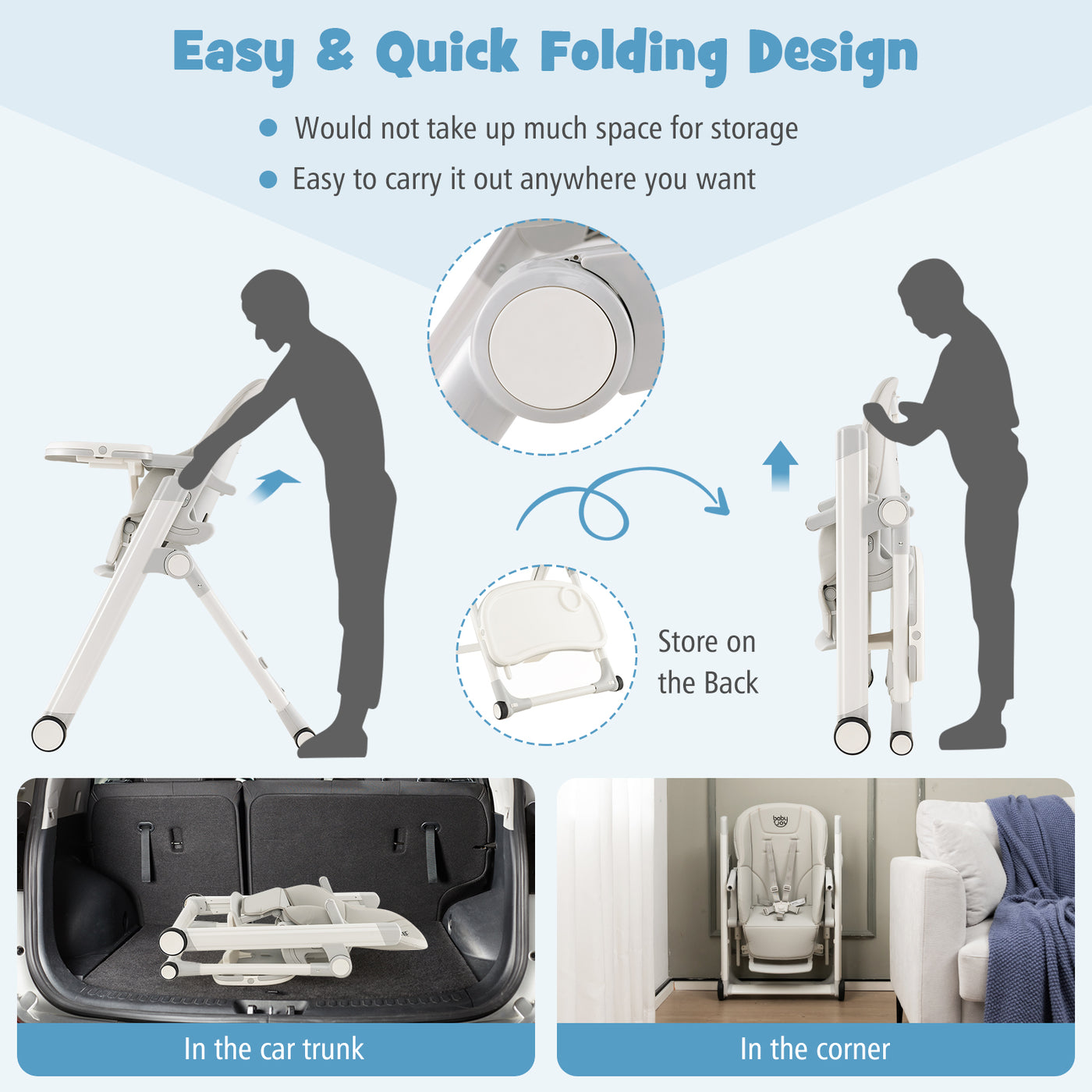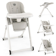 Foldable High Chair with Recline Backrest and Adjustable Height-Light Grey