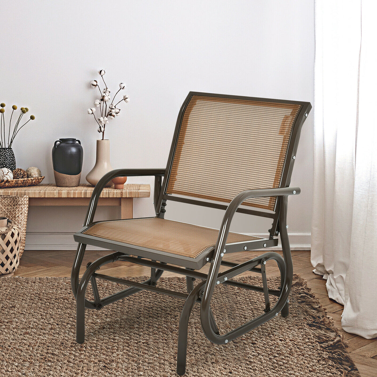 Are you looking for a rocking chair for your outdoor space? This rocking chair is an ideal choice for you.Don't hesitate to buy it now! Gentle Swing Function: As with any rocking chair, for safety reasons, your weight is always centred in the seat. This gliding rocking chair offers a relaxing gentle glide allowing you to relax and enjoy the outside. A perfect gift for yourself or for friends and family. Superior Seat & Back Fabric: Crafted with specialising fabric, the seat and back have high tensile strength and a load capacity of up to 150kg. The fabric provides good ventilation offering you an extremely comfortable seat. Ergonomic Design of Chair: With 2 armrests at a suitable height to rest your arms or hands, the chair has a gentle sloping back, ergonomically designed for comfort to your back. Sturdy Steel Frame: Made from heavy-duty steel, the frame of the rocking chair is durable offering a long service life. The frame is powder coated, ensuring the chair can endure moderate wind or rain outside. The bottom of the frame has 4 pads to prevent slipping and to protect the ground. Attractive Styling with Many Uses: The glider rocking chair is great for relaxing, resting and dozing in. Suitable to be placed on your patio, in your garden, by your pool side in a conservatory etc. The modern attractive styling, adds a decorative addition to your outdoor space. Dimensions: 63cm x 73cm x 87cm (L x W x H).
