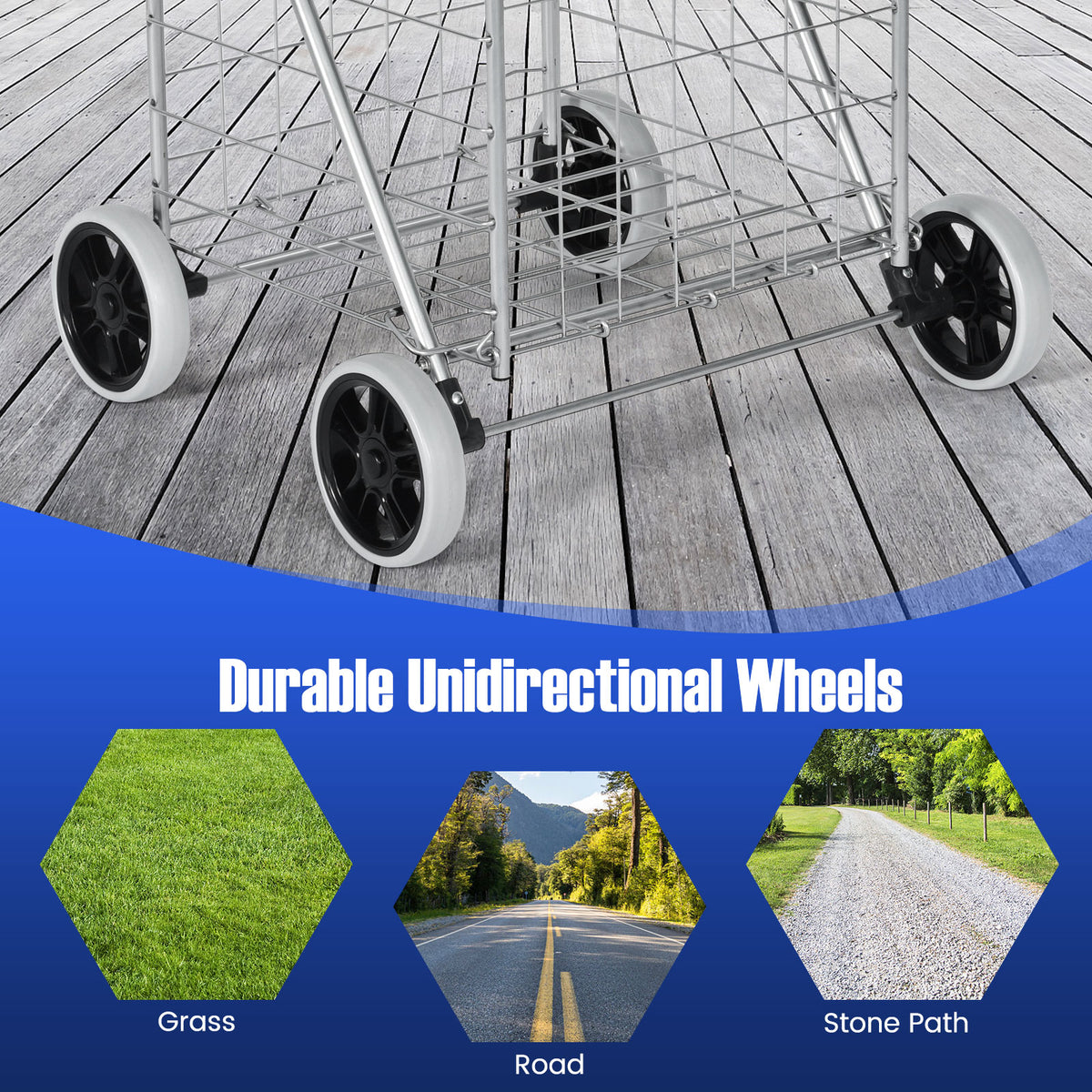 Heavy Duty Folding Shopping Cart with 83L Metal Basket-Silver