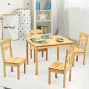 Kids Table and 4 Chairs Set for Toddlers Dining, Drawing, Reading-Natural