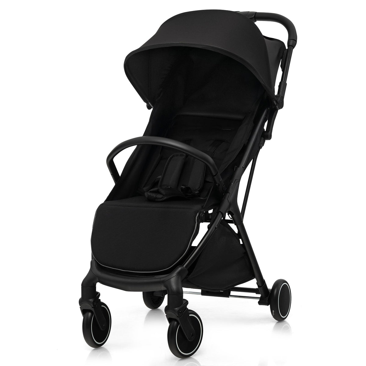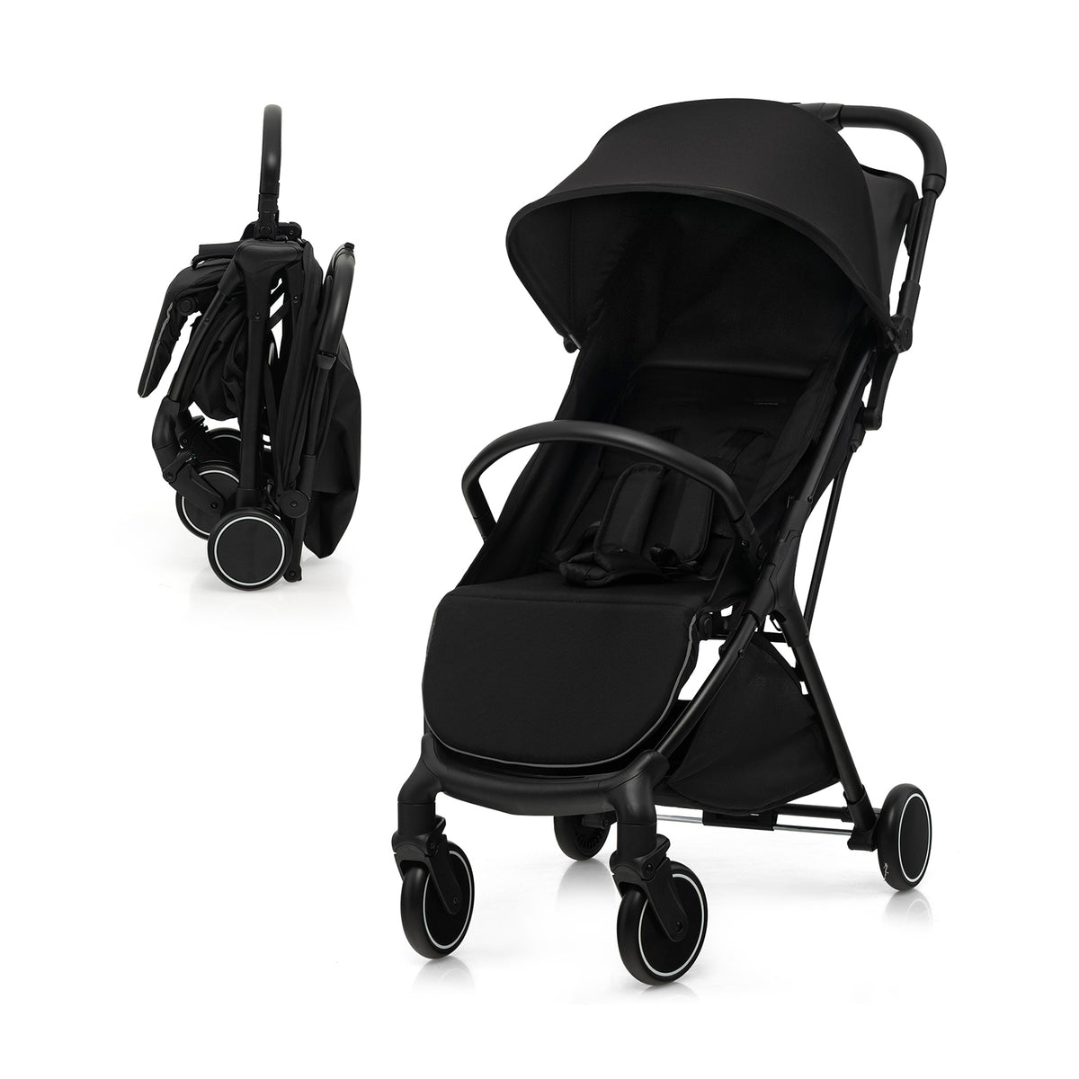Go anywhere with this portable baby stroller! Equipped with the one-hand folding design, this baby stroller is easy to carry and transport for parents to go out. And the compact size takes up less space when not in use. Made of a high-quality aluminum frame and skin-friendly oxford cloth, the baby stroller is rustproof and wear-resistant for years to come, which can accompany your baby from 0 to 36 months. Besides, the 5-point harness and rear wheels with a one-step brake ensure your baby's safety during use. And the adjustable canopy, backrest, and footrest are designed to satisfy various requirements. Don't miss it! Multiple Adjustments: The backrest of the baby stroller can be reclined from 115° to 170° for sleeping, lying, and sitting. And the 3-position footrest offers more comfort. What's more, the 2-position adjustable canopy with breathable skylight will protect your baby from direct sunlight, providing the best rest environment for the baby. One-hand Folding and Easy Storage: The portable baby stroller is easy to transport with a one-click quick folding design. Besides, this lightweight aluminum frame weighs only 7 kg, which saves you effort when you go out. And the compact size offers great convenience for storage when not in use. Safety and Comfortable Design: Equipped with a 5-point safety belt, the baby stroller will keep the baby in place firmly. The removable handrail is convenient for babies to get in and out. In addition, the comfortable EVA handle will not make you feel tired after pushing the stroller for a long time. Flexible Wheels and Safety Brake: With a high-quality shock absorption spring system, the baby stroller can ride smoothly on various terrains, such as the cement road, speed bumps, gravel, and more. The 360° rotation front wheels are flexible to move. Plus, the one-step brake can stop 2 rear wheels rapidly at the same time. Parent-friendly Design: There is a large storage basket under the baby stroller, which offers ample space to put the baby's essentials and make them within reach. Plus, the removable backrest with zipper for better air circulation during hot days. This baby stroller will be a great choice for baby showers, holiday gifts, and more.