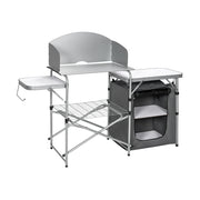 Colour: Silver and Grey Material: Aluminum, Steel, 600D Oxford, PVC, MDF Overall Dimension: 146cm x 48cm x 110cm (L x W x H) Net Weight: 10kg Weight Capacity of Middle Tabletop: 50kg Box Qty:1(May vary by batch)Package includes: 1 X Folding Camping Table 1 X Carrying Bag 1 X Instruction Manual