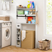Maximize your bathroom storage space with our over the toilet storage cabinet! This over the toilet cabinet provides large storage without taking up too much floor space. Equipped with multiple shelves, 2 hooks and a convenient toilet paper holder, this freestanding storage cabinet keeps your bathroom essentials neatly organized and easily accessible. Additionally, the adjustable shelves allow you to customize the storage to your needs. To enhance stability and security, this over the toilet storage cabinet comes with 2 anti-toppling devices and non-slip foot pads. The added bonus of a sliding barn door provides a touch of elegance to your space. Spacious Storage Space: Featuring a top shelf, 3 compartments and 3-tier shelves, this over the toilet storage cabinet offers multiple storage areas for towels, toiletries, shampoos, skincare products, etc. Plus, the extra toilet paper holder and 2 practical hooks provide great convenience. Sliding Door and Adjustable Shelves: This freestanding bathroom organizer comes with a smooth sliding barn door, allowing for easy access to items inside without opening the door outward. Besides, there are 2 adjustable and removable shelves for you to customize the storage space based on your needs. Added Stability and Safety: Made from thickened boards and equipped with 2 anti-toppling devices, this storage cabinet above the toilet is sturdy and safe to use. In addition, the anti-slip and anti-scratch foot pads provide enhanced stability and floor protection. Versatile Space Saver: This storage cabinet is specifically designed to fit perfectly over most standard toilets, making use of otherwise underutilized space in the bathroom. It is a functional storage solution for your bathroom, laundry room and more. Considerate Design: Thanks to the design of anti-falling heightened edge, the items you placed on the top shelf can be well protected. Moreover, this bathroom toilet storage cabinet includes screw hole stickers for a seamless and finished look after assembly.