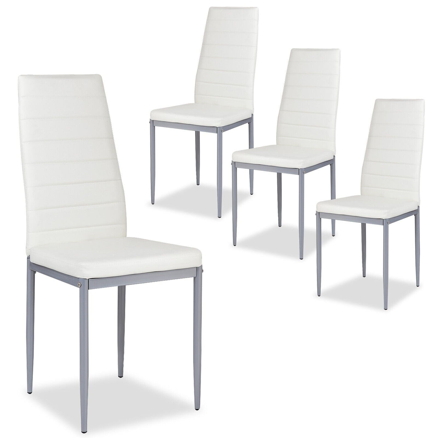 Set of 4 Armless Upholstered Dining Chairs with High Back-White