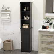 Bring storage and elegance to your limited bathroom with this tall storage cabinet! The floor cabinet features a 2 open shelves, an utility drawer and a cabinet with door, providing ample storage space for various bathroom items and other items. In addition, adjustable shelf on the top and adjustable shelf of the cabinet create customized storage space. Additional features like smooth sliders, round knob and quiet door catch make the drawer and cabinet easy to open and close. This storage cabinet is made of premium MDF, which is stable and durable for long-term use. It is easy to assemble and you can fix it to the wall for stability. The stylish, slim storage cabinet is perfect for use in the bathroom, living room, bedroom, or corridor. Quality Material and Stable Structure: Constructed from quality MDF, this tall bathroom storage cabinet has excellent durability and stability. Besides, the tall organizer can be fixed to the wall for extra stability with included hardware, protecting the safety of your family. The smooth painted surface is waterproof and easy clean, suitable for bathroom use. Plenty of Storage Capacity: This tall cabinet has plenty of room for classified storage and keeps your room clean. You can store towels, bottles of shampoo and wash supplies on the open shelves for easy access. Easy-sliding drawer can help you keep small toothpaste and toothbrush items. And the lower enclosed cabinet keep items clean. Adjustable Shelf Design: It is worth mentioning that the top open shelf and lower shelf of the cabinet are both adjustable for customized storage. You can freely adjust the storage space for some taller items. Besides, the door cabinet is easy to open and close thanks to sleek knob handle and quiet magnetic door catch. Modern Style and Versatile Use: With white appearance and elegant louver details on the door, this bathroom storage cabinet blends well into any home decoration. This stylish, practical storage furniture is a great storage solution for your home. It can be placed in your bathroom, living room, kitchen and more. Tall Slim Design for Small Space: This tall slim organizer measures 34.5cm x 30cm in length and width, which utilizes vertical storage space and takes up small footprints. It fits perfectly into small space. Plus, the raised bottom design helps reduce bad smell accumulation. Simple structure and detailed instructions makes it easy to assemble.
