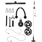 SPORTNOW Cable Machine Pulley System with 2 x 5kg Weight Plates, Lat Pull Down System with Loading Weight for Home Gym Biceps Triceps Arm Shoulder Back Training - Black