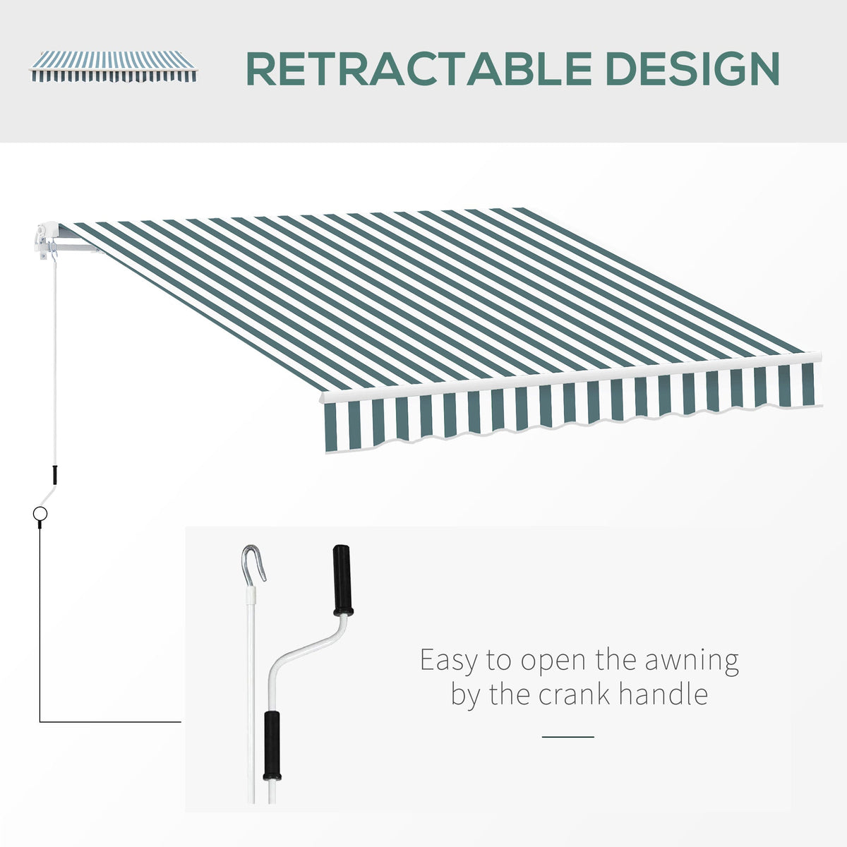 Outsunny Retractable Awning, 2.5x2 m-Dark Green/White - Green, White