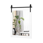 Wall Mounted Mirror with Solid Wood Frame and Metal Bracket-White