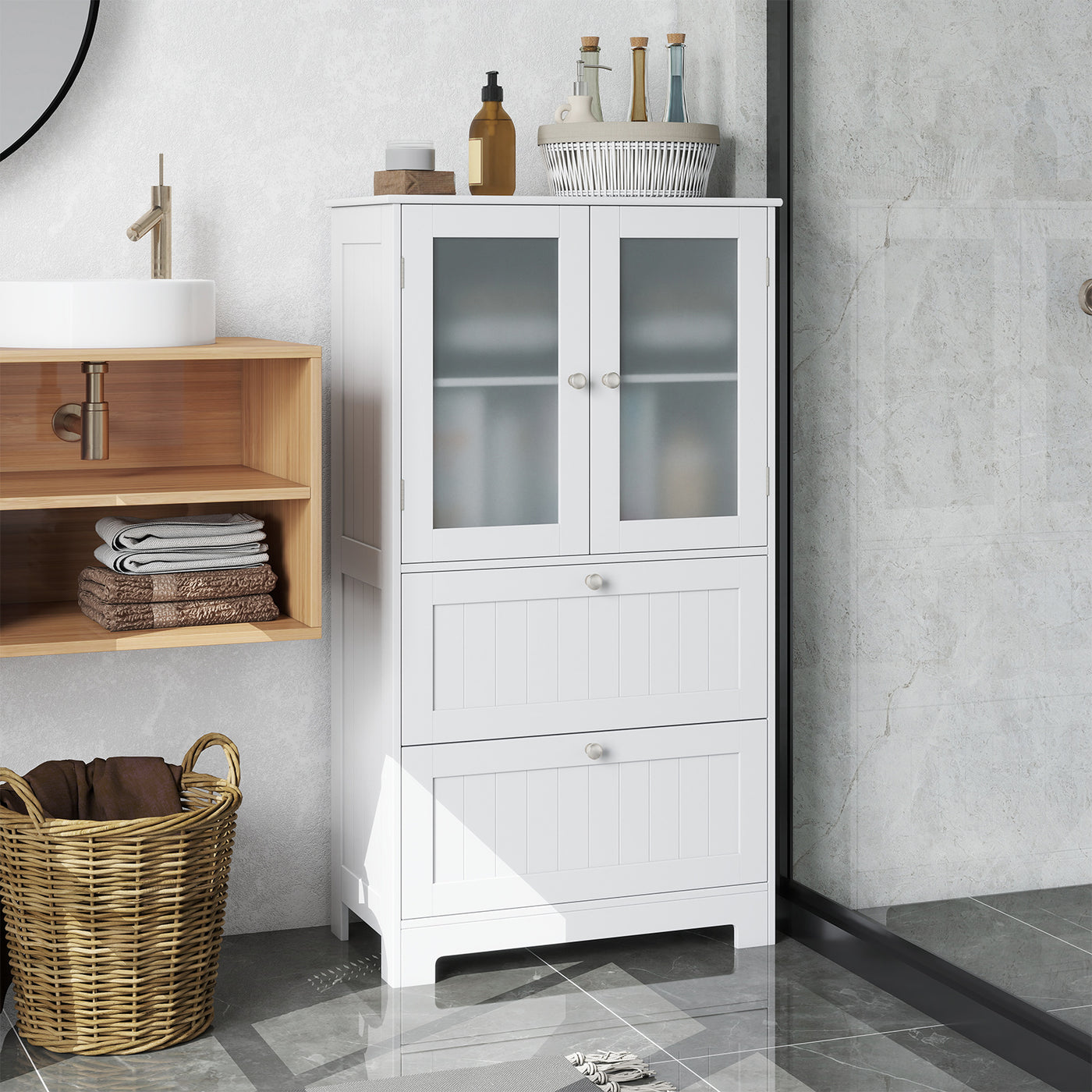 Need neat, space-efficient storage? Our slim floor cabinet packs serious organization into small spaces, featuring a roomy 2-door cabinet, 2 deep drawers, and bonus space up top. The frosted tempered glass doors keep contents private yet visible, while resisting daily wear. Safety meets adaptability with included anti-tipping kits and a 3-level adjustable shelf, perfect for everything from your favourite plates to fragile beauty product bottles. Whether in your bathroom, hallway, or kitchen, its clean-lined design elevates any space. Plus, its easy-to-clean surface wipes down in seconds to reduce its maintenance need. Say hello to a well-organized bathroom with the aid of our floor cabinet! Ample Storage Space: Our floor cabinet features a large 2-door cabinet for storing essentials, plus 2 deep drawers to hold bathroom towels and paper supplies. Additionally, the top of the cabinet serves as a versatile display or additional storage space. Frosted Tempered Glass Doors: Equipped with tempered glass panels, the 2 upper doors are built to withstand daily wear while providing privacy. The frosted glass offers a neat appearance and subtly hints at the items stored within, blending functionality with style. Stable and Customizable Design: The organizer unit offers enhanced stability with 2 anti-toppling kits, making it safe and reliable for home use. For adaptability, the upper cabinet also comes with a 3-level adjustable shelf to organize items of varying sizes, ensuring a snug fit with ease. Thoughtful Details: Designed with user convenience in mind, the storage cabinet includes metal door knobs and smooth metal drawer slides for ease of use. Plus, the magnetic catches keep the doors securely shut, and your items safely inside. Space-saving Organizer Unit: Measuring 60 cm x 30 cm x 108 cm, the slim floor cabinet is perfect for space-conscious areas. Its modern simplicity makes it ideal not only for bathrooms but also for hallways, kitchens, or living rooms, enhancing any area it graces.