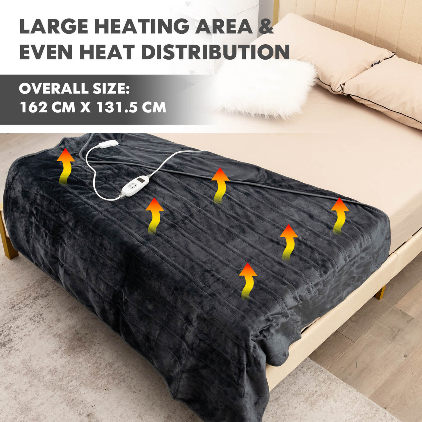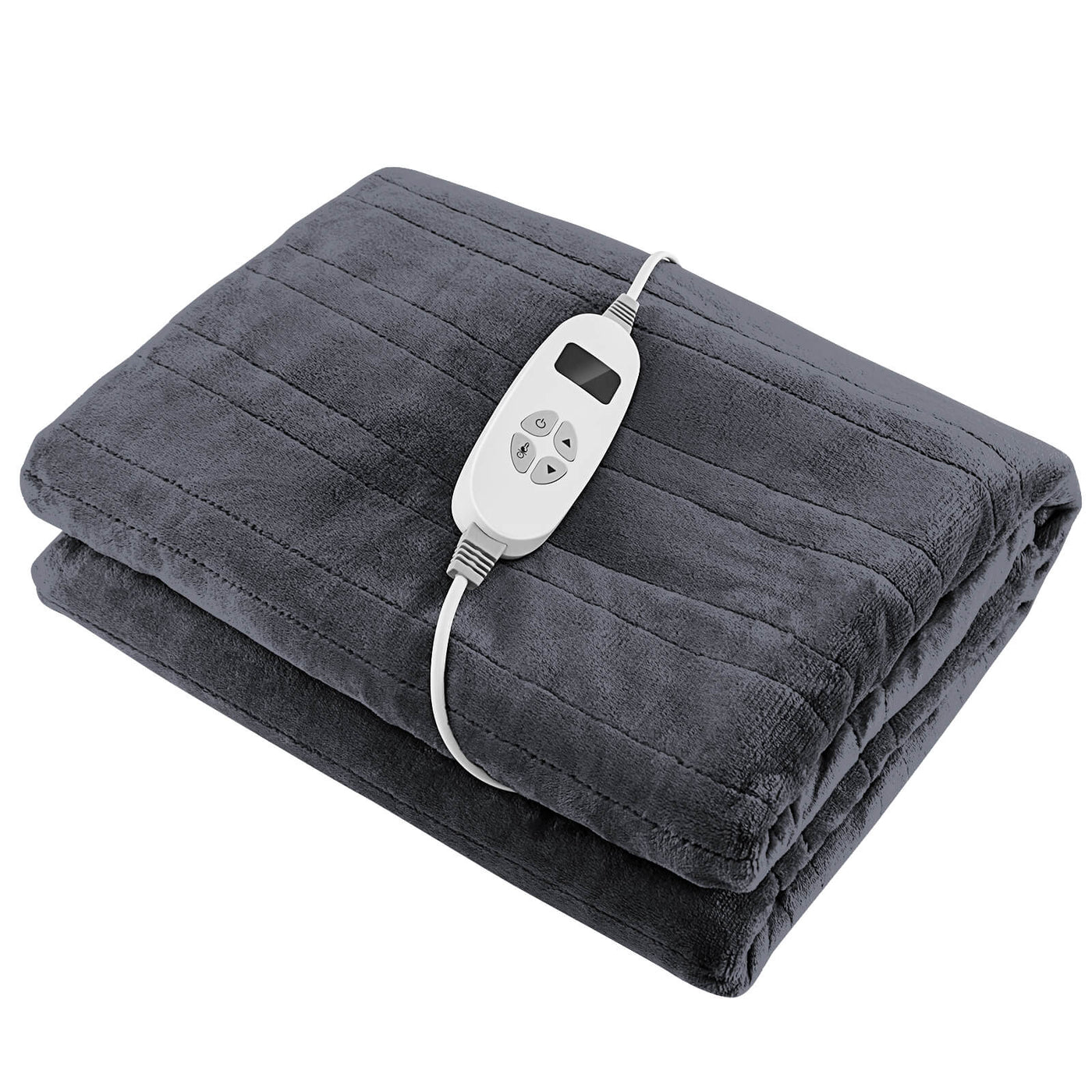 Enjoy cosy life with the heated electric blanket! As winter and the new year are upcoming, a warm blanket is essential for you and your families. The electric blanket features a powerful PTC heater that delivers heat rapidly and evenly, while providing overcurrent and overheat protection. Moreover, 10 heat temperatures and 9 hours of auto shut-off are available with an easy-to-operate controller. So your diverse needs will be satisfied and your restful sleep will be ensured. And the heated throw blanket is well crafted with double-sided flannel for a more comfortable experience. With this flannel electric blanket, you could be wrapped in warmth in for the whole winter. Besides, the large electric blanket throw is washable with hands and machine for simple cleaning. Thus, it will be a warm-hearted gift for your parents or friends! Dual Control Remote: The electric blanket throw is equipped with a remote control that allows you to set the heating temperature from 25-46°C in 10 levels to meet your different needs. In addition, you can pre-set the auto-off time so you don't have to get up at midnight. And the remote control has a clear digital screen for you to observe the result of the setting. Safe Overheat Protection and Efficient Heating: The heated throw has used advanced PTC heater that covers a large area to ensure even distribution and rapid heating in a short time. What's more, the electric blanket has overheating and overcurrent protection so that you can use it with confidence! Easy to Use and Wash: Once connect the coupler and power supply, the heated blanket will start heating quickly. Besides, comfortable electric throw blanket is available to wash with hands or machine for easy care. And please detach the power connection before washing. Note: Do not dry clean, bleach or iron. Applicable for Anywhere: Since the electric blanket throw is easy to use, you will enjoy instant heat and warmth wrapped around you anytime and anywhere. Hence, the heated throw can be used as a sofa blanket, office blanket or bed throw to bring you super relaxation while watching TV, reading, playing games, working or studying. Ideal Gifts for Beloved Ones: Made of super cosy double-sided flannel, the electric over blanket is skin-friendly with a gentle touch, so as to bring lasting warmth and luxurious experience in the cold winter. Therefore, the heating throw will be the perfect gift for a beloved one or someone with cold hands and feet.