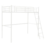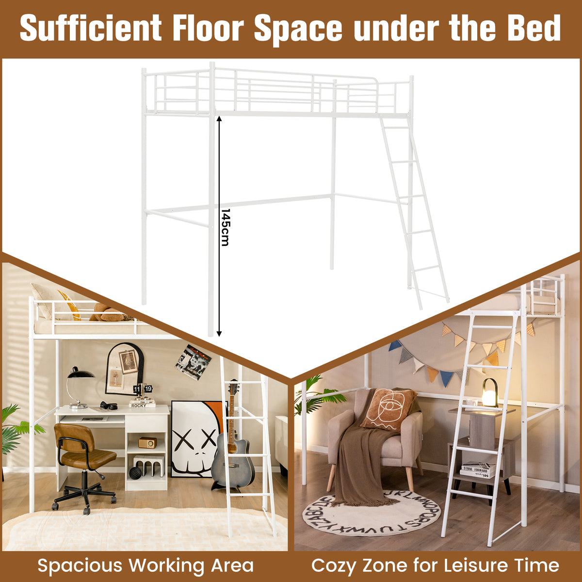 Metal Loft Bed with Integrated Ladder and Full-length Guardrails-White