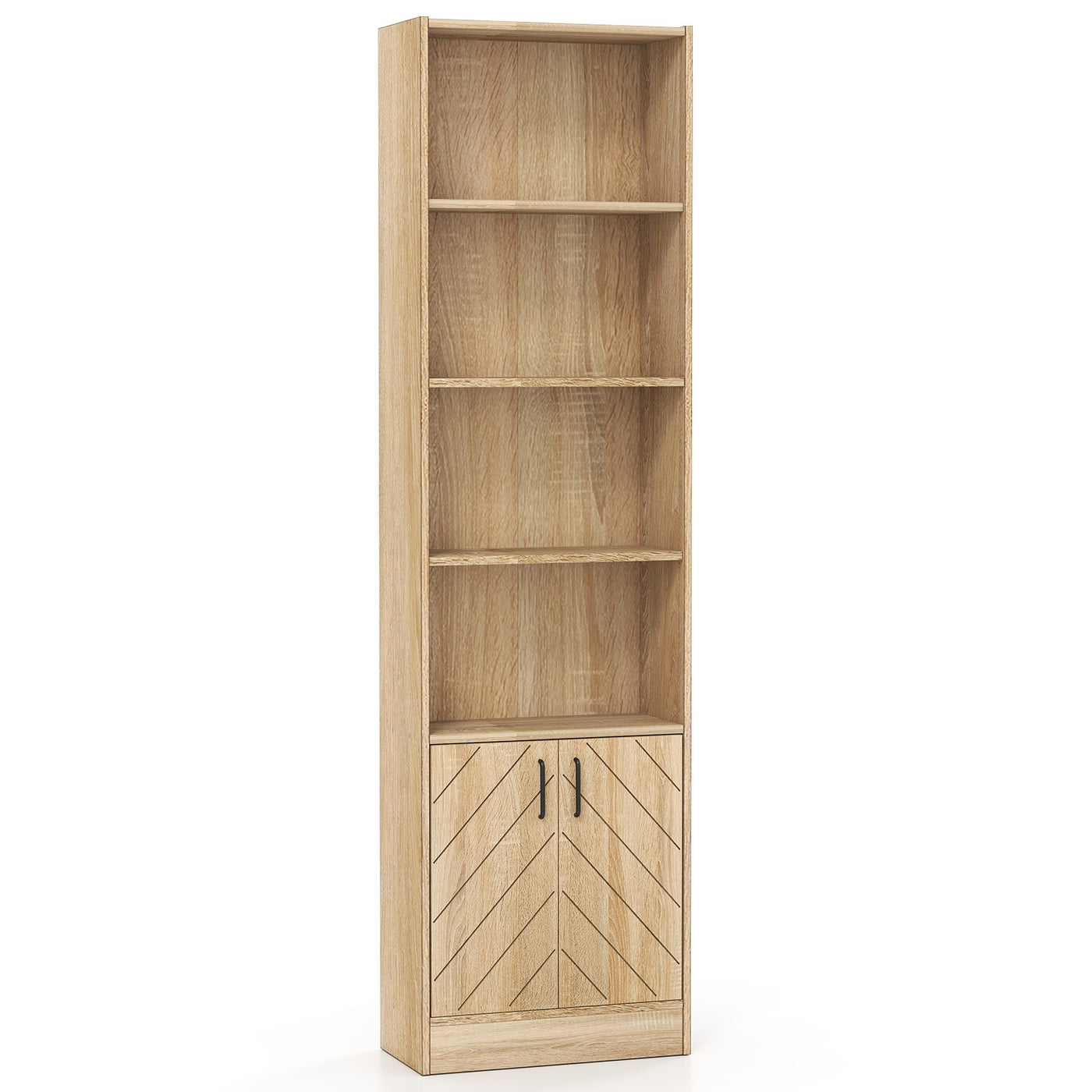 6-Tier 180cm Tall Bookshelf with Double Doors Open Cubes-Oak