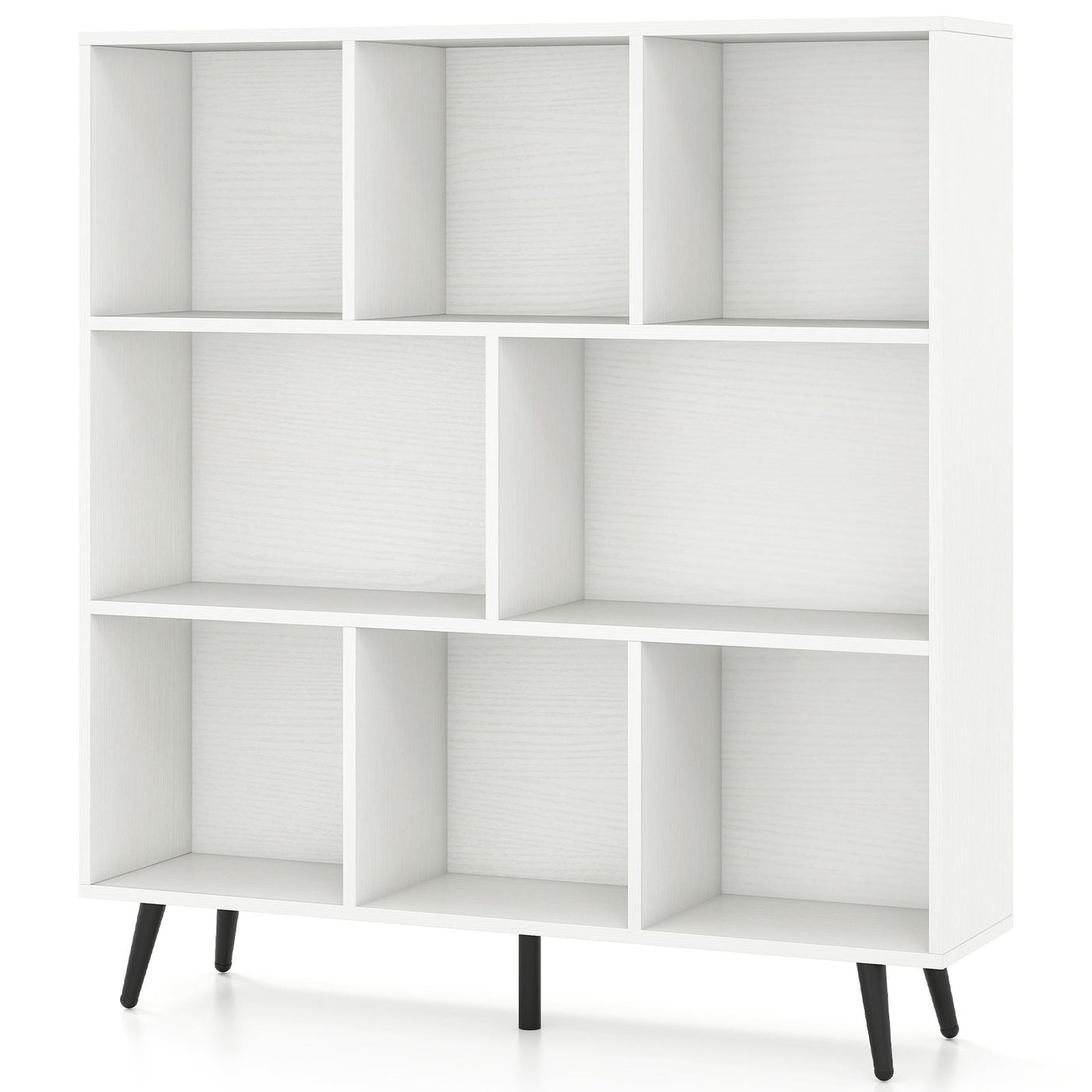 Transform any room with style and order! Elevate your sophistication with our ultra-chic cube bookcase that offers not just ample storage with its designer 8 compartments perfect for your beloved books, cherished photos, and crafts but also ensures a clutter-free sanctuary. Built to endure, thanks to premium materials and solid corner bracing with sturdy metal legs featuring non-slip security, this freestanding bookcase is as reliable as it is glamorous. Safety is a premium with 2 anti-tipping devices, ensuring your peace of mind. Plus, maintaining your stylish space is a breeze with its easy-clean surface and convenient under-space. Its mid-century charm makes it a versatile stunner, ready to beautify your bedroom, spruce up your office, or liven your living room! Maximize Your Storage: With 8 spacious compartments, this cube bookcase is perfect for organizing books, albums, crafts, photos, and more. Keep everything tidy and stylishly displayed for a clutter-free space! Built to Last: Crafted from premium boards with firm corner brace, this freestanding bookcase is incredibly sturdy. There are 5 tapered metal legs with non-slip pads ensure long-lasting support and stability. Safety You Can Trust: The cube storage organizer comes with 2 anti-tipping kits to prevent accidents. This feature makes the bookshelf safe and secure for your peace of mind. Easy to Maintain: The sleek finish of the display rack is super easy to clean and maintain. Plus, the 12 cm ample clearance underneath makes floor sweeping a breeze—no more cleaning hassles! Versatile and Stylish Addition: This versatile bookcase has mid-century modern charm that fits any style. Perfect for your bedroom, living room, or office, it adds a touch of elegance wherever you place it!