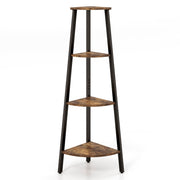 4-Tier Corner Ladder Shelf with Heavy-duty Metal Frame and Anti-toppling Device-Rustc Brown