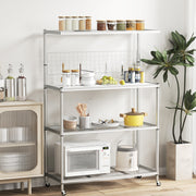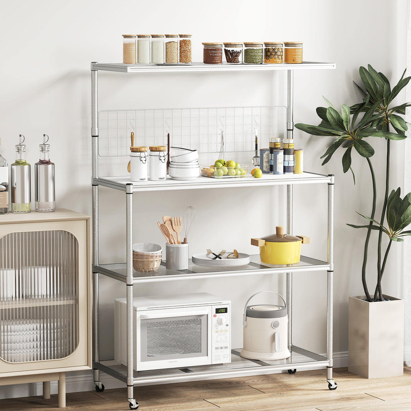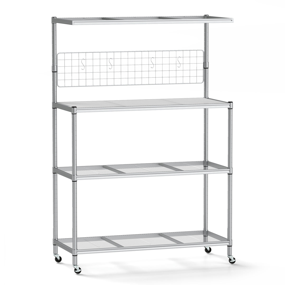 Bakers Rack on Wheels with Adjustable Shelves and Shelf Liner-Silver