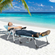 The lounger with flat aluminium frame has stronger loading capacity of up to 150kg. Must have foldable lounge chair for outdoor recreation! do not hesitate to place an order! 7 Adjustable Backrest Positions: By simply moving the armrests back and forth, you can get 7 backrest positions for the lounge chair. And you also have two choices of footrest positions during use. Hence, this sleeping cot can fully satisfy your daily requirements, like reading books, playing phones, watching TV or taking a nap. Removable Pillow and Built in Cup Holder: This lounge chair is equipped with a removable sponge headrest. With the help of it, your head and neck can get full relaxation. Besides, there is a rotatable cup holder for your drinks. So it is convenient for you to get your water bottle when enjoying leisure time. High Quality and Comfortable Material: Made of high density fabric, the recliner is waterproof and wear-resistant for outdoor use. The durable and breathable surface plays an effective role in keeping air flow. Thus, you can always enjoy cool and comfortable using experience when your skin contact with the recliner. Portable Triple Folding Design: This portable folding camping cot can be folded into a size of one third of its expanded size, which is small enough to be stored in narrow space. You can easily carry it anywhere, like beach, backyard, beach, poolside, etc. The unfold and fold processes are effortless and simple for everyone. Durable and Stable Metal Frame: Compared with other lounge chairs supported by round pipes, our lounger with flat aluminium frame has stronger loading capacity and better stability. And its U-shaped chair legs are padded with plastic foot pads to avoid getting slipped or scratching indoor floor.