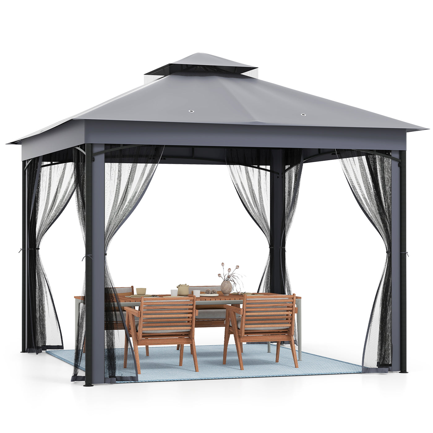 Patio Gazebo Outdoor Double-Roof Canopy Tent with Mesh Netting-Grey