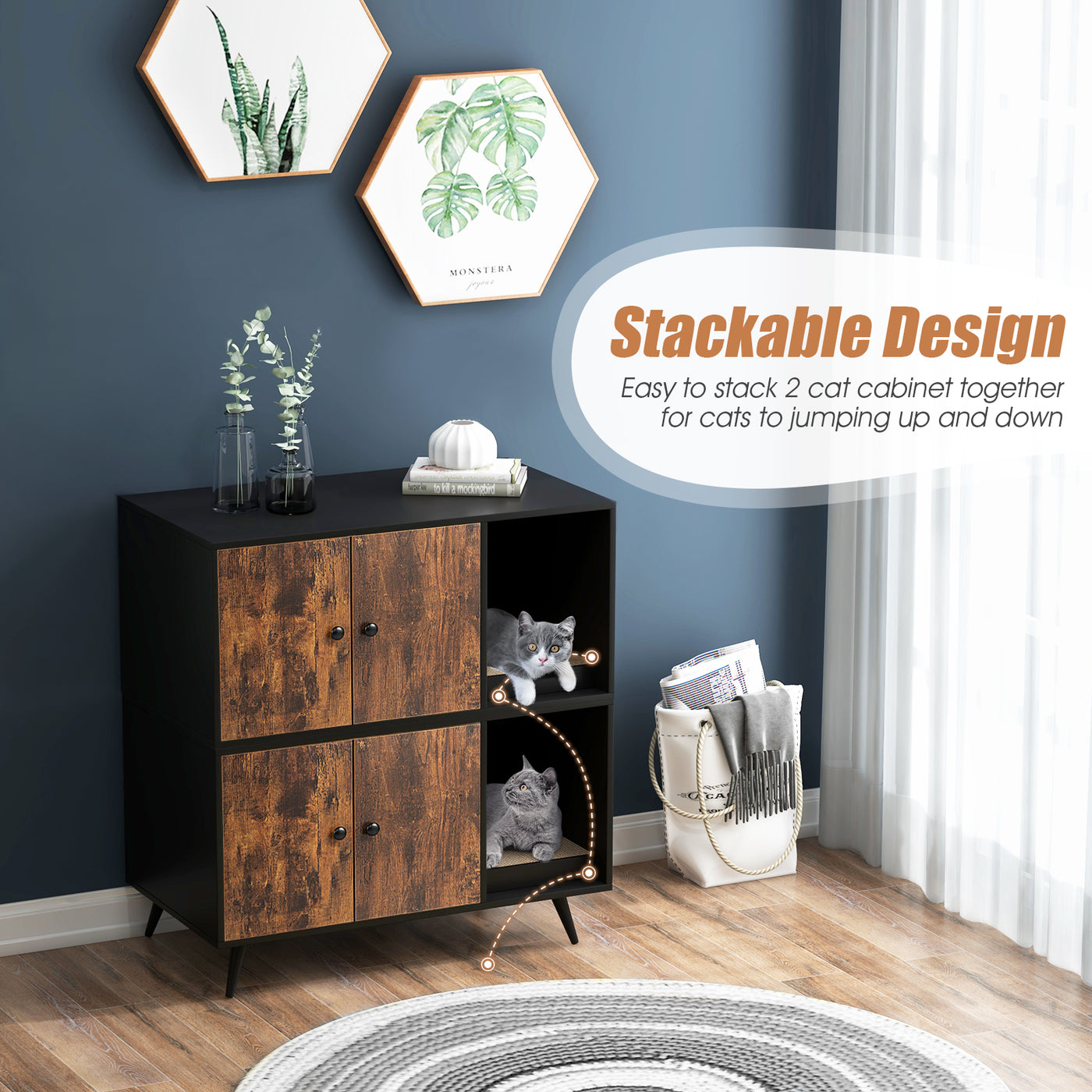 Modern Cat Litter Box Enclosure with Double Door Cabinet