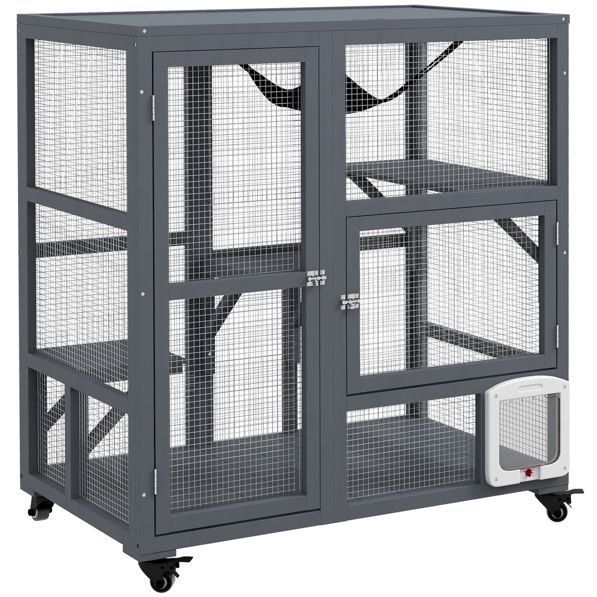 Say hello to your pet's new favourite spot – PawHut's spacious cat enclosure. It's a cosy sanctuary for indoor use. It features wheels for mobility and a large door for easy access to the litter box. Multiple entry points and platforms, including a hammock, offer plenty of space for your cat to relax and play. Upgrade their space with this stylish and functional home.