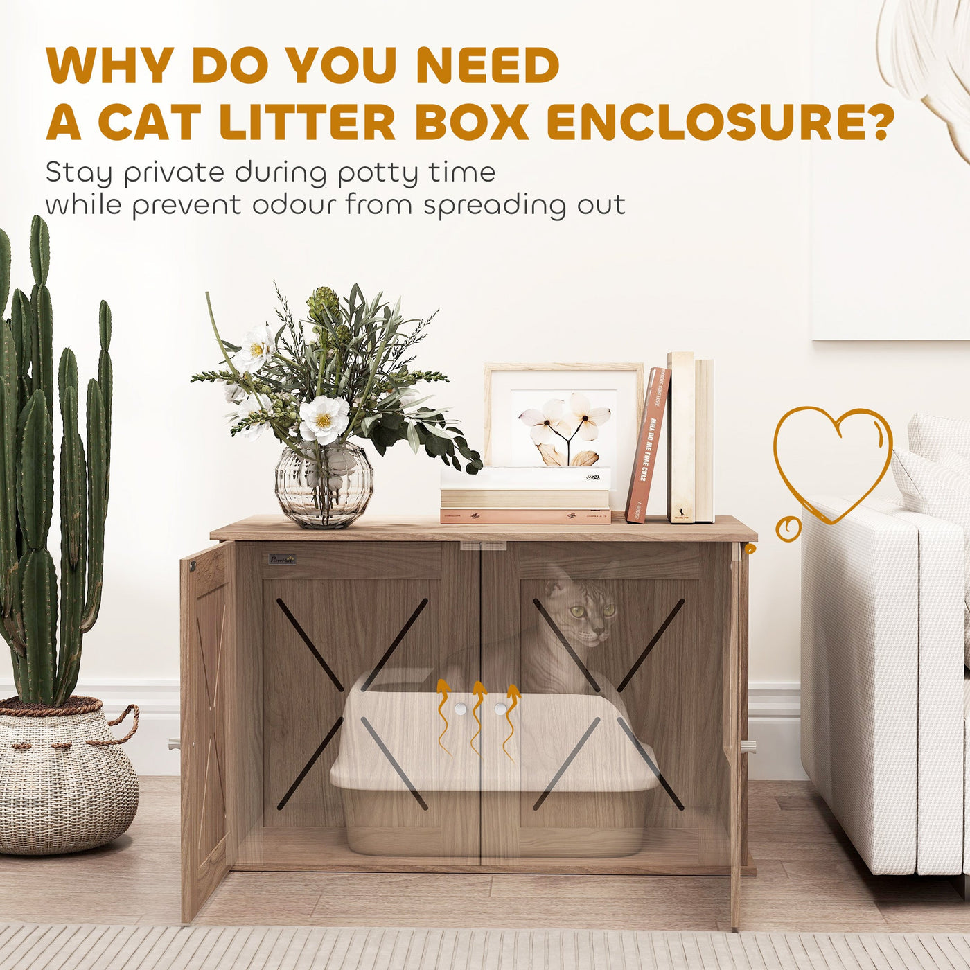 PawHut Cat Litter Box Enclosure with Double Doors and Side Entrance, Non-Slip Pads for Living Room, Walnut Brown - Walnut brown
