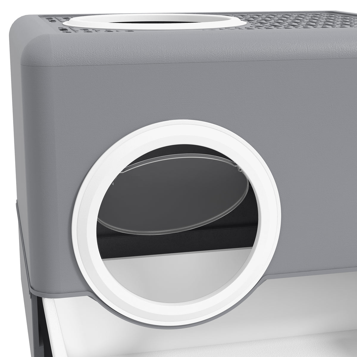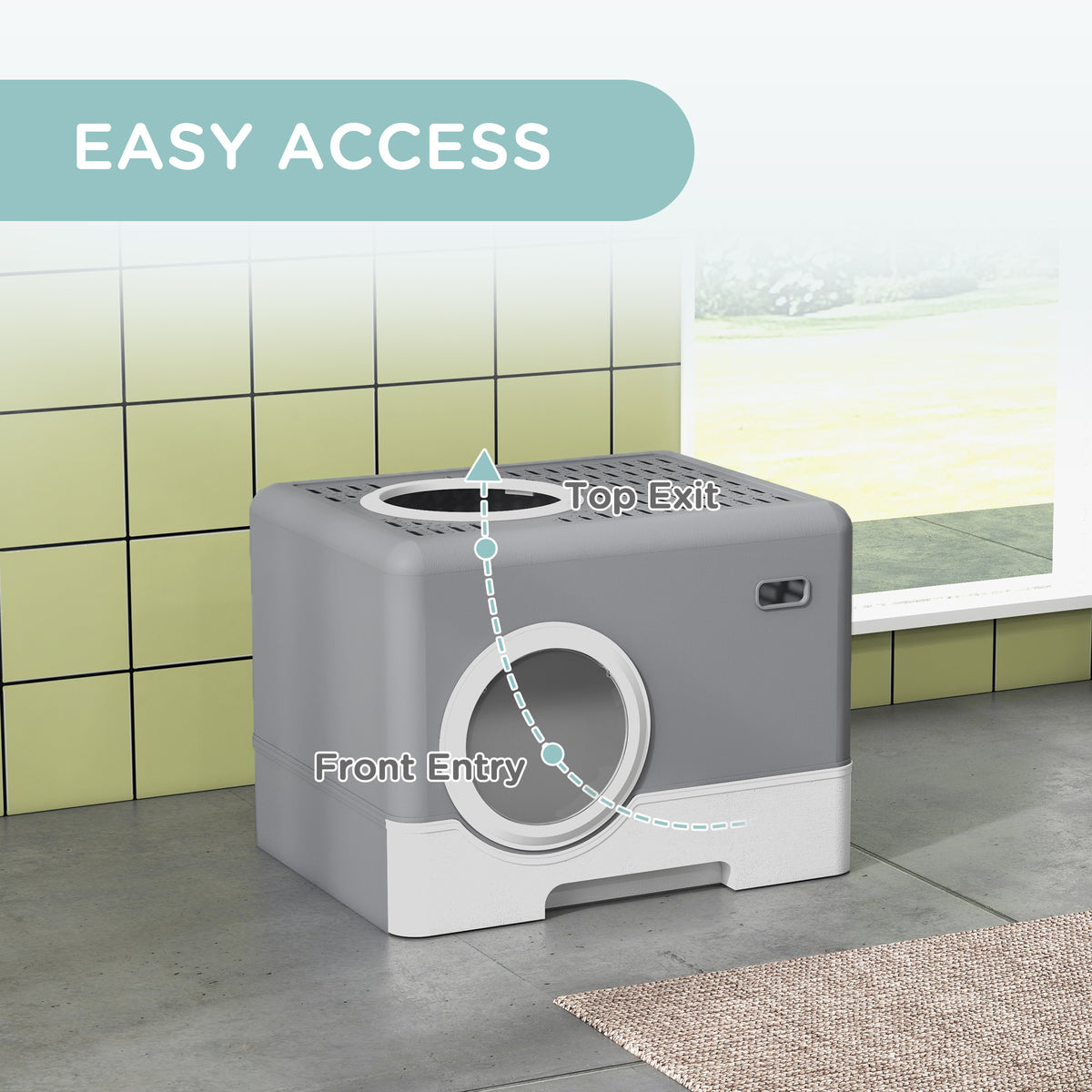 PawHut Enclosed Cat Litter Box, with Lid, Front Entry, Top Exit, Pull-Out Tray, Scoop - Grey