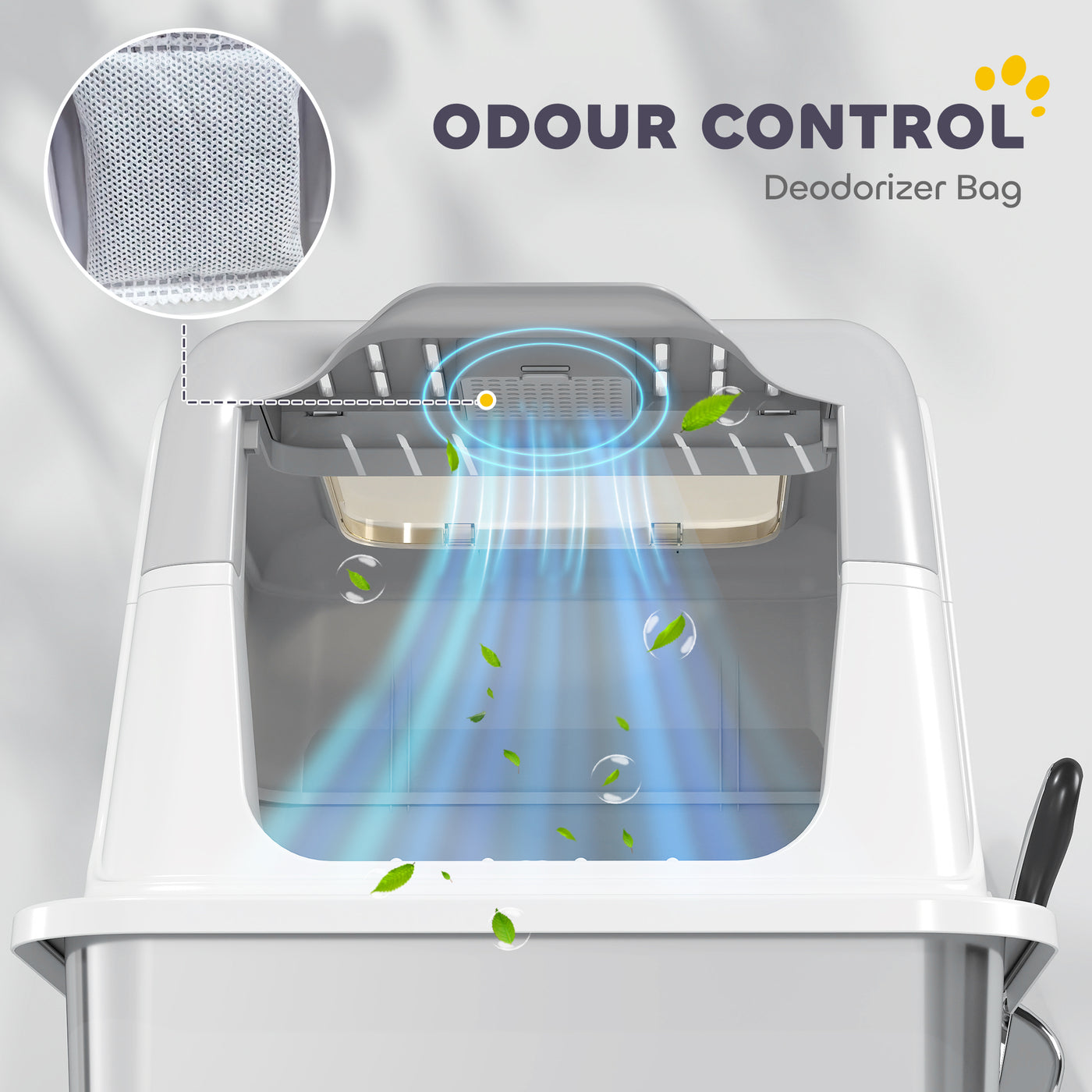 PawHut Extra Large Stainless Steel Litter Box, Enclosed Cat Litter Tray with Scoop, Deodorizer Bag, Front-Entry and Top-Exit - White