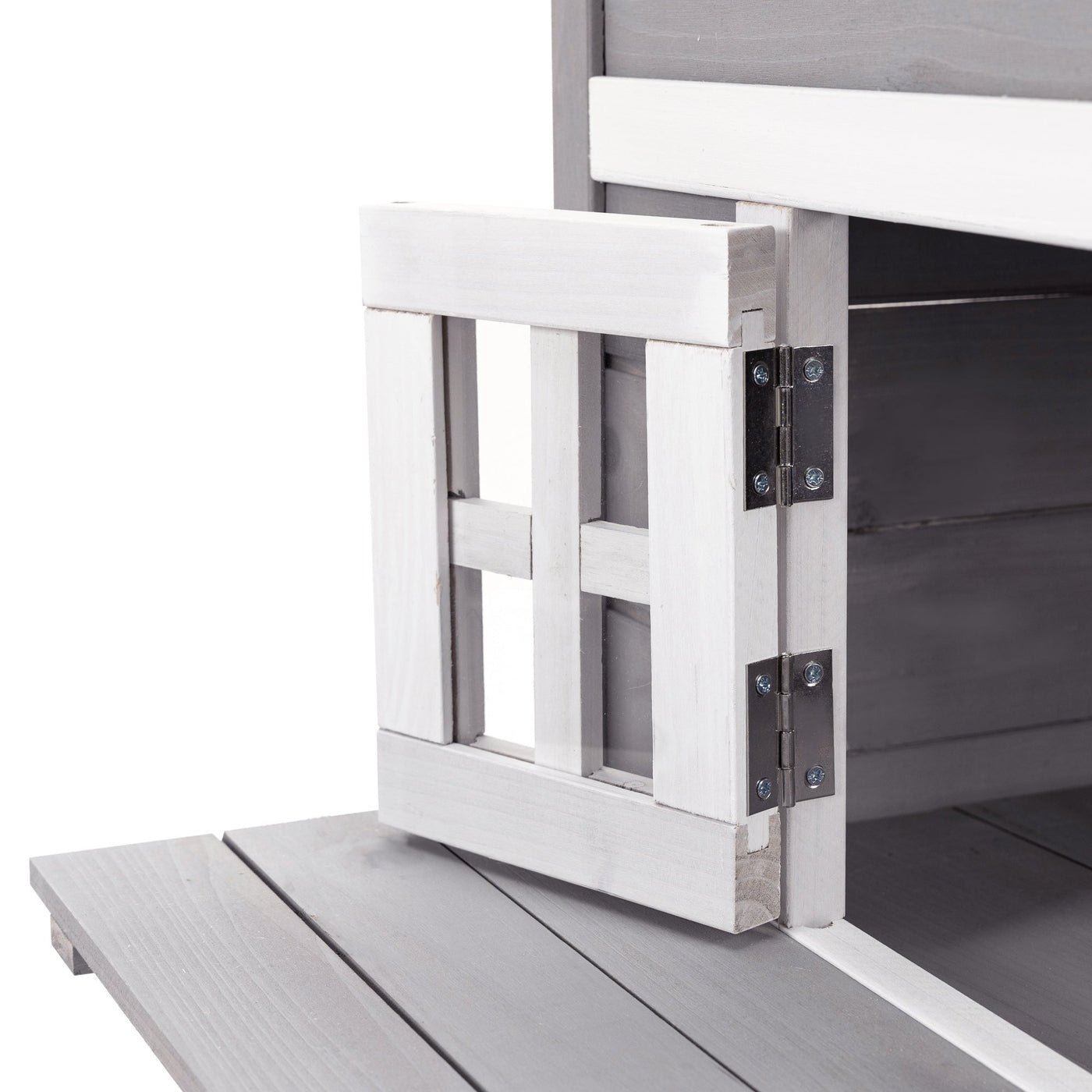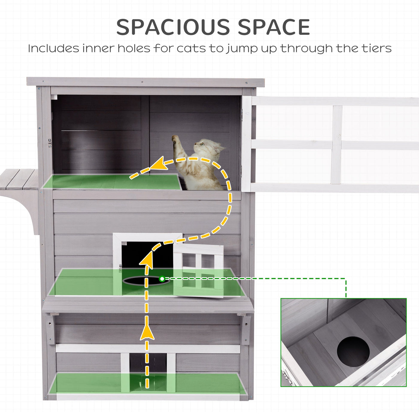 PawHut Three-Tier wooden Kitten Shelter, Outdoor Cat House, with Jumping Platforms, Asphalt Roof, Doors - Grey