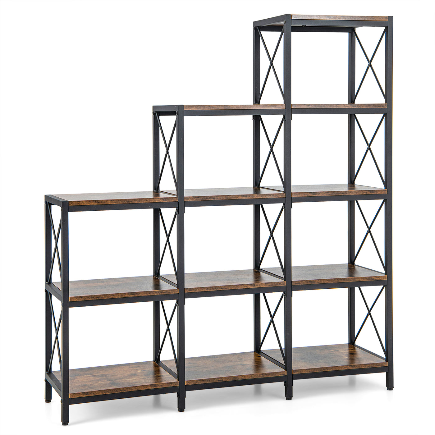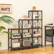 5-Tier Bookshelf 9 Cubes Bookcase with Carbon Steel Frame-Rustic Brown