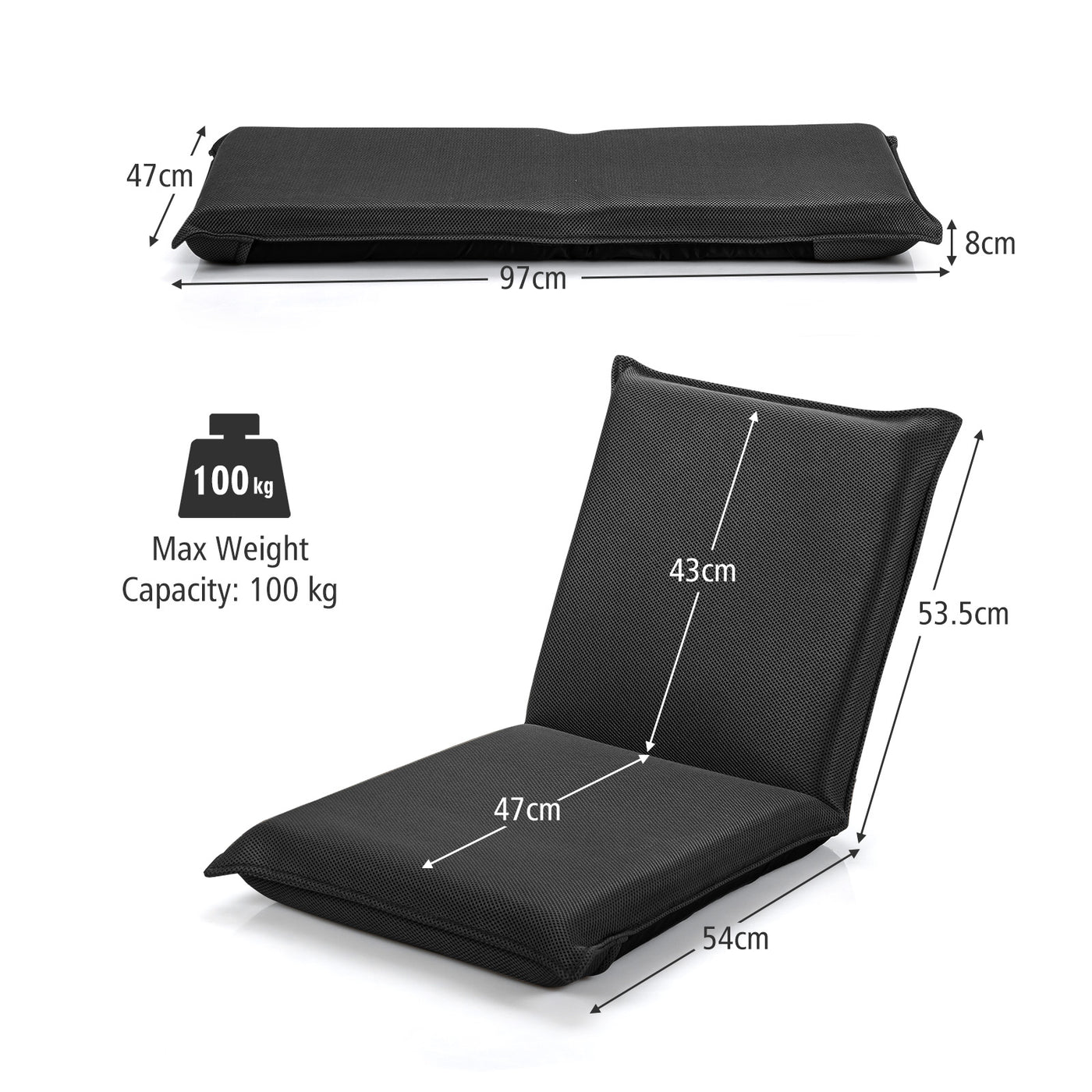 Folding Floor Chair with Reclining Function and 6 Adjustable Positions-Black