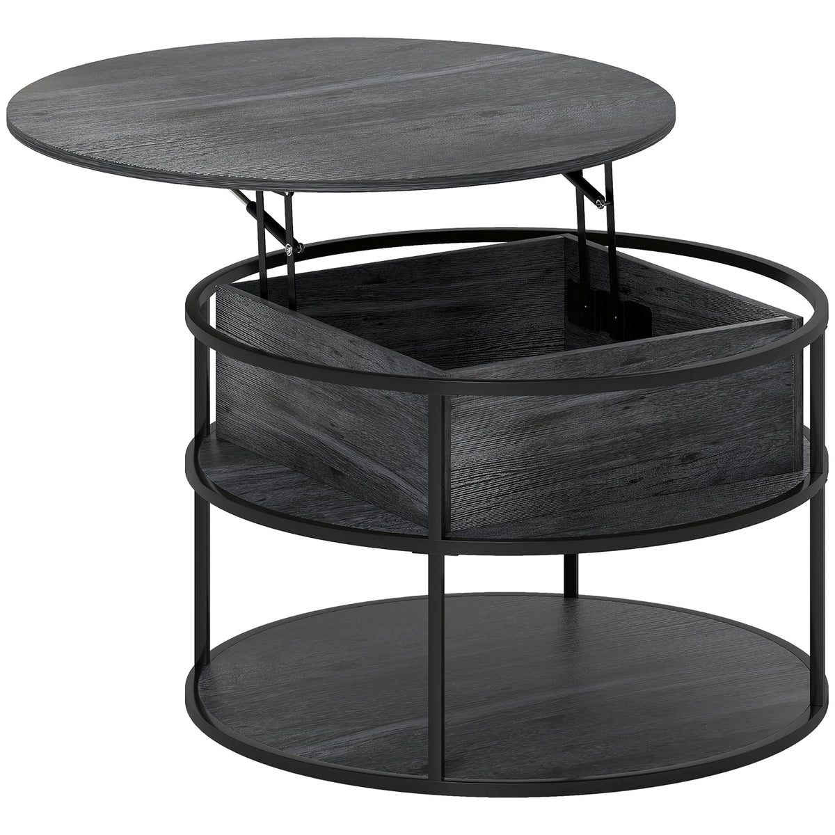 HOMCOM Lift Top Coffee Table, Round Coffee Table with Storage Shelf, Hidden Compartment and Steel Frame for Living Room, Home Office, Charcoal Grey - Charcoal grey