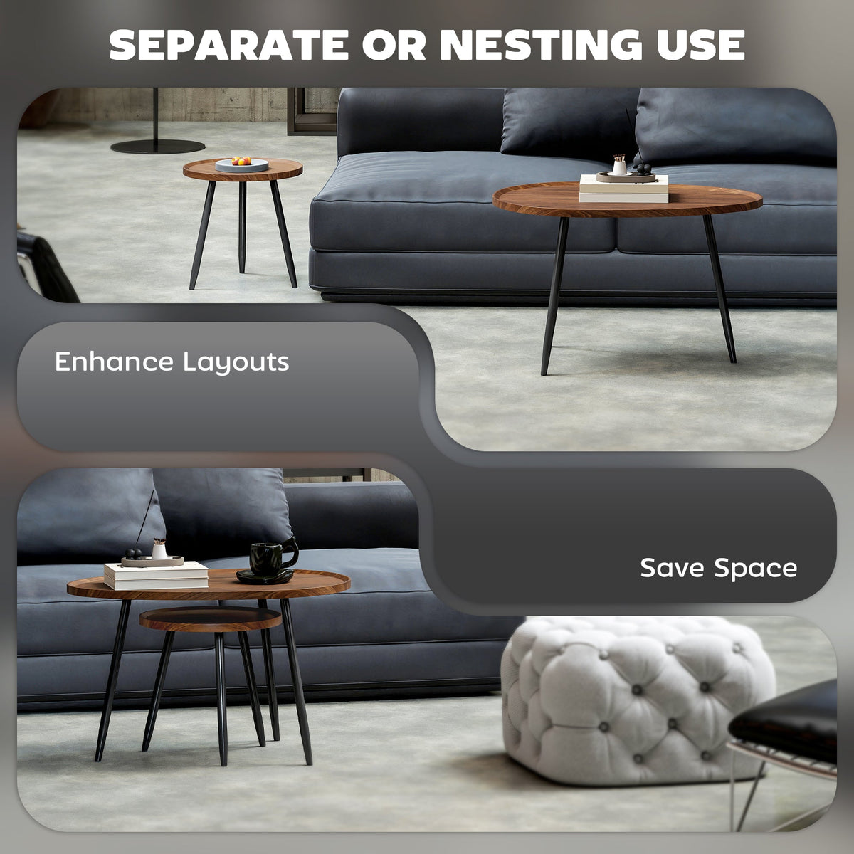 HOMCOM Nesting Coffee Table Set of 2, 80cm Modern Stacking End Side Table with Metal Legs for Living Room Bedroom Office, Chestnut Wood Effect