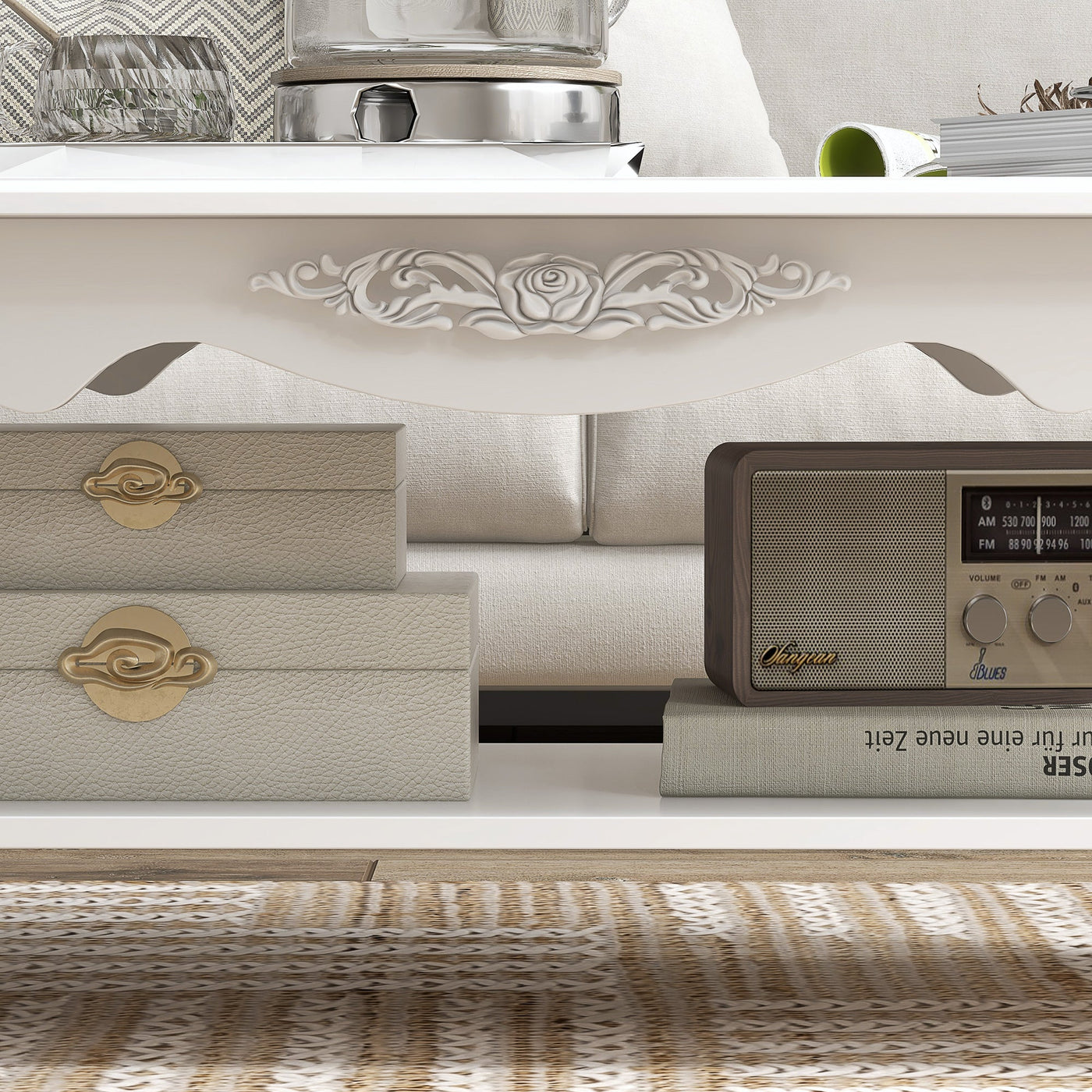 HOMCOM White Coffee Table Wood Cocktail Tea Centre Table with Storage Shelf for Living Room Reception Room, 94L x 44W x 42H cm - White