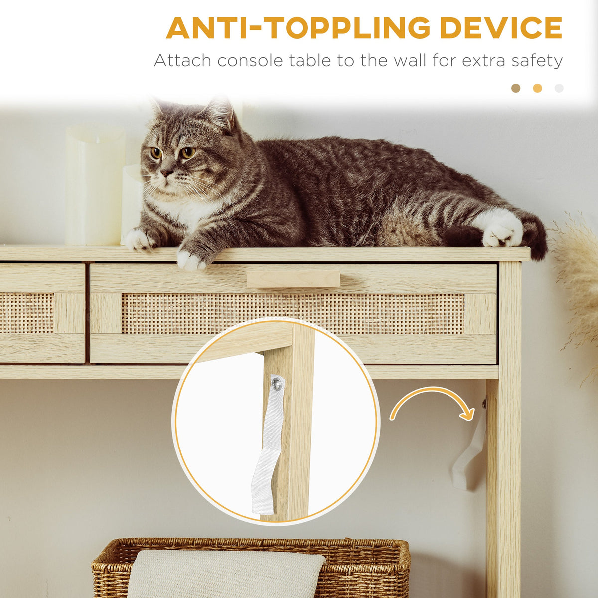 HOMCOM Console Sofa Table Hallway Side Desk with Storage Shelf Drawer for Entryway Living Room Bedroom Natural