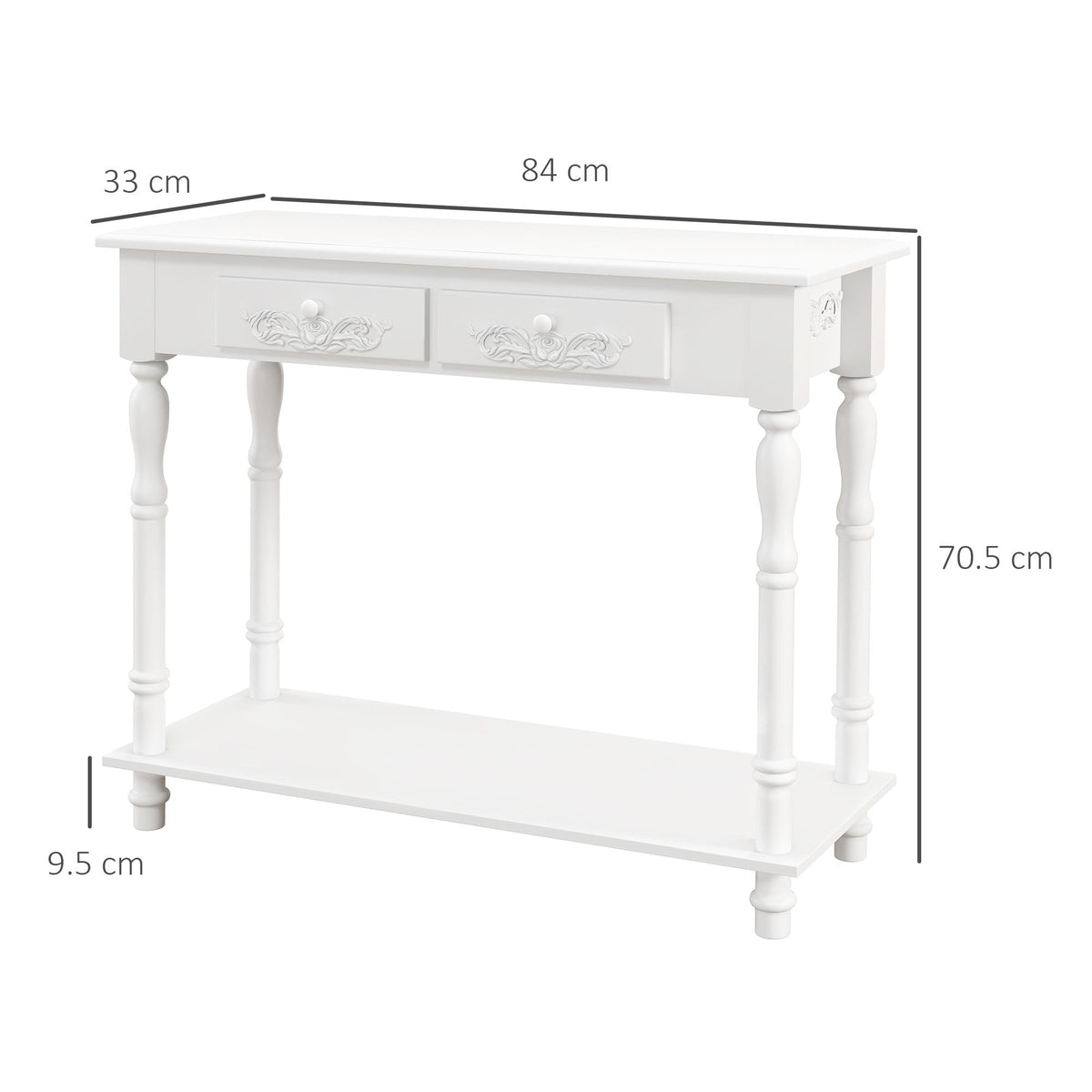 HOMCOM Console Table Modern Sofa Side Desk with Storage Shelves Drawers for Living Room Entryway Bedroom White - White