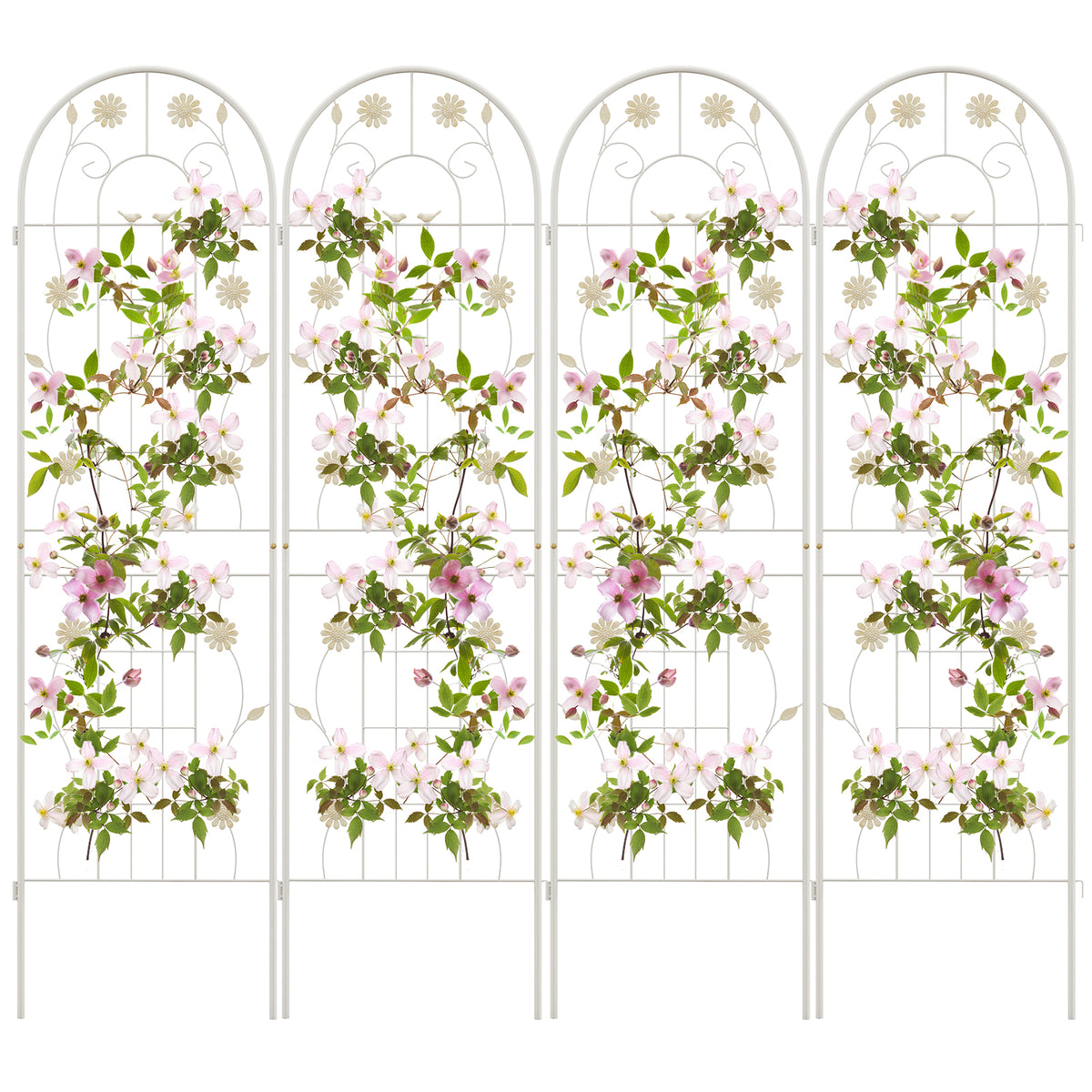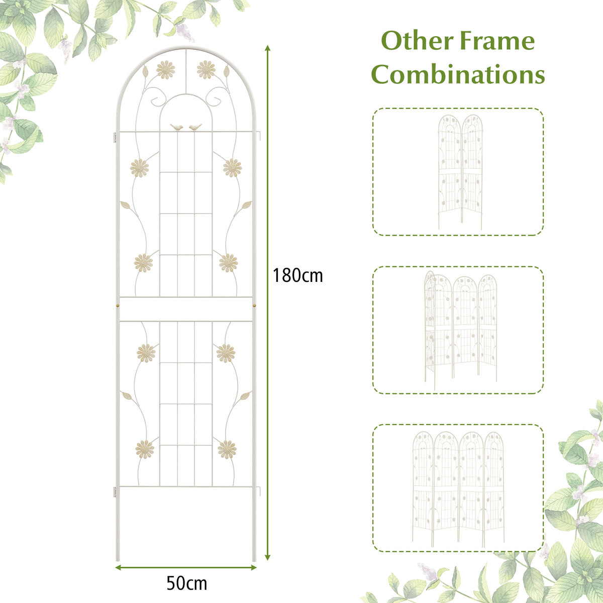 Designed with rust-proof metal, it offers reliable support and long-lasting performance. The cucumber trellis comes with a beautiful look, maximizes your gardening space and promotes vertical growth for various climbing plants. With an innovative lock system, it's not just a climbing trellis, but a customizable plant support system for your patio, yard, or lawn. If you are looking for such a product, do not hesitate to buy it! Sturdy and Durable Material: Made from high-quality metal, this garden trellis has superior sturdiness and durability. Moreover, the powder-coated finish ensures resistance against rust, wear and different weathers, making it perfect for outdoor use. Versatile Plant Support: The metal garden trellis is perfect for climbing plants such as clematis, morning glory, cucumber, pea and more. Besides, with the practical lock, the lattice panels can be combined together as a garden fence, allowing you to arrange them into different modes for your needs. Stylish and Elegant Look: The rustproof plant stand is suitable for the garden, patio, yard and many other places. Plus, the vivid bird decors and pretty flower patterns enhance the aesthetics of your area, turning it into a captivating focal point. Maximize Your Space: The climbing trellis utilizes vertical space to support plants, enabling you to make the most of your outdoor space. Thus, plants can absorb sunlight and rain equally, and you can experience the joy of seeing the garden flourish in an efficient way. Hassle-free Assembly: Setting up the metal garden trellis is a breeze with easy-to-follow instructions. In addition, the insertable legs allow you to place the climbing trellis anywhere you like in no time, and also promote stability.