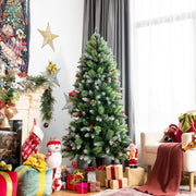 Create an unforgettable Christmas scene for your family and friends with this beautiful slim pencil tree! This will not be out of place in a residential or commercial setting. If you are looking for a 6ft decorative artificial Christmas tree like this, do not hesitate to place an order! ● Two Types of Branch Tips: This evergreen artificial Christmas tree is made up of 714 individually crafted branch tips, some of which are sprayed with an artificial snow powder. The mix of faux pine needles and ordinary PVC tips integrate smoothly with each other helping to create a lifelike and realistic appearance. ● Holiday Festival Tree: This well-designed Christmas tree can be used as a centrepiece for Christmas parties whilst also being just as welcoming in a home environment. This 6ft unlit Christmas tree with several red berry clusters looks full of vitality. ● Metal Stand and Hinged Branches: The 3 sections are slotted together easily allowing the hinged branches to drop into place. Time can then be spent fluffy and decorating to suit your own requirements. Included is a sturdy metal base to improve the overall stability of the tree. The stand also folds up quickly and easily for storage. The stand also has protective pads on base to help protect flooring. ● Self Decorate: Except for the red berry clusters and the snow effect, this unlit Christmas tree has no other ornaments on it, providing ample space for you to decorate this pine tree to your own specification or theme. It’s a good chance for you to release your imagination and enjoy endless fun of DIY. ● Suitable for Various Placements: Measuring 2.6ft in diameter, this slim pencil tree takes up only small floor space. As such, this tree can fit into more places compared with wider trees. This beautiful unlit tree helps to provide a warm and festive atmosphere for residential or commercial properties.