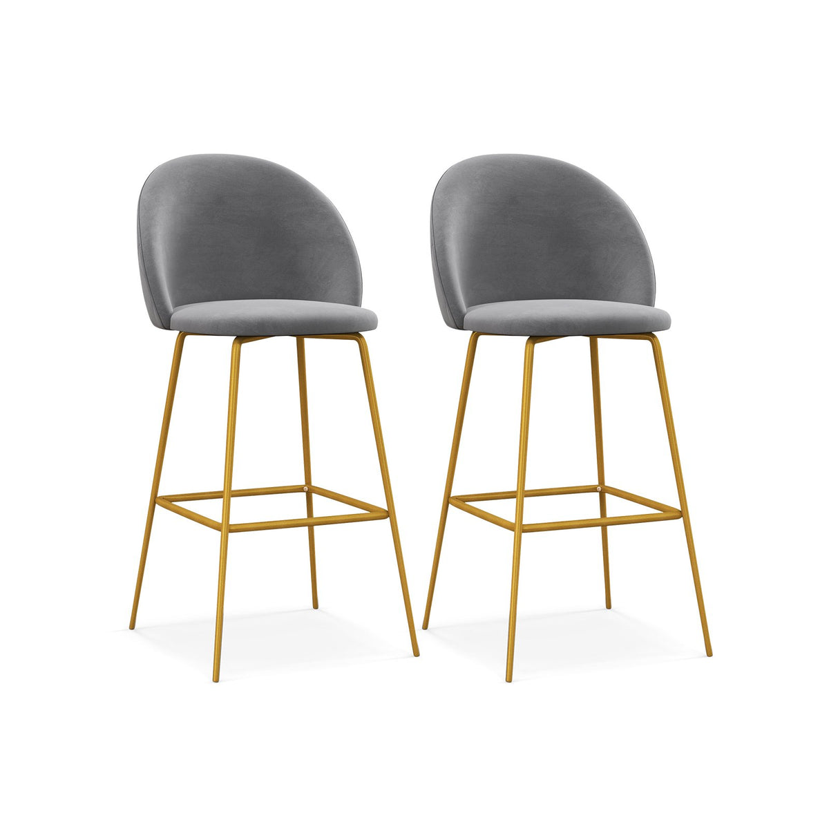 The bar stools combine gray velvet fabric and gold metal, which will fit well with any home decor. You can use them in your kitchen, dining room or home bar. Besides, covered with premium velvet fabric, the seat cushions are soft and easy to clean. Filled with elastic sponge, the seats are comfortable to sit on. They also feature extra footrests for better relaxation. With a 29" seat height, these chairs are ideal for 102-110 cm bars. Apart from that, the heavy-duty metal frame keeps our chairs steady and not easy to wobble. Thus, these bar chairs can serve you and your family members for a long time. If you are looking for bar stools like this, do not hesitate to place an order! Ergonomic Curved Backrests: Designed with slightly slanted backrests, these bar-height stools are sure to offer great support for your back. Apart from that, the curved backrest can also fit well with your body curve, which helps to ensure your leaning comfort. Solid Metal Legs and Footrests: Supported by solid metal legs, these bar chairs are able to perfectly support your body weight and effectively avoid wobbling or collapsing. Plus, the footrests are also made of gold-tone metal pipes, which allows your feet to rest. Velvet Upholstered Bar Stools: The bar stools create a cozy corner for you and your family members. The velvet-covered backs and seats are super skin-friendly and soft to touch. Besides, we also fill the seats with elastic sponge to give you a relaxing and comfortable feeling. 74 cm Seat Height and Wide Uses: The bar chairs with 74 cm seat height match 102-110 cm high bars. Plus, combining exquisite sewing and gold-tone legs, the bar stools bring a touch of texture and can be used for kitchen counters, home bars, dining areas, lounges or bistros. Easy to Assemble and Maintain: The package includes a clear user manual and all needed hardware, so that you will finish installation quickly. The overall dimension of each bar chair is 50 cm x 50 cm x 108 cm (L x W x H). What's more, the smooth velvet fabric is easy to maintain.