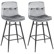 The modern leisure bar chairs are covered with breathable and soft velvet. Filled with high-density sponges, the curved backrest and wide seat offer great comfort when you sit on. What's more, you are able to put your legs at the footrests for a more relaxing sitting experience. With the heavy-duty metal frame, the velvet bar height stools allow you to sit safely and stably. The modern design with tufting renders these high dining chairs ideal for diverse places, such as the kitchen, dining room, home bar, coffee shop, etc. If you are looking for a set of bar stools like this, do not hesitate to place an order! Upgraded Comfort: Covered with soft velvet fabric that is skin-friendly and breathable, these bar height bar chairs offer comfortable touch and sitting experience. Moreover, the high-density and thick sponge filling makes the bar stool set softer to sit on. Ergonomic Design: The upholstered high dining chairs feature a curved backrest and wide seat, which contour your body curves. More importantly, the humanized footrests provide places to rest your legs for a more relaxing sitting. Excellent Stability: The solid metal legs with tapered and splayed design promise durability and sturdiness. Besides, the X-shaped reinforcement under the seat contributes to additional stability. And the non-slip foot pads enhance overall steadiness and protect the floor from scratches. Wide Application: With tufted design, the velvet bar height bar stools add unique fashion charm to your space. And the modern appearance is suitable for various occasions, such as the kitchen, dining room, home bar, etc. Simple Assembly: The bar height stools set of 2 will come with clear instruction. The labelled parts and complete hardware simplify assembly. Overall dimension: 45 x 50 x 104 cm (L x W x H), back size: 42 x 36 cm (L x W), seat size: 43.5 x 37 cm (L x W), seat height: 72 cm.