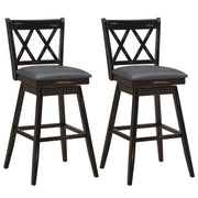Set of 2 Counter Height Bar Stool with Foot Rest Upholstered Cushion-Black